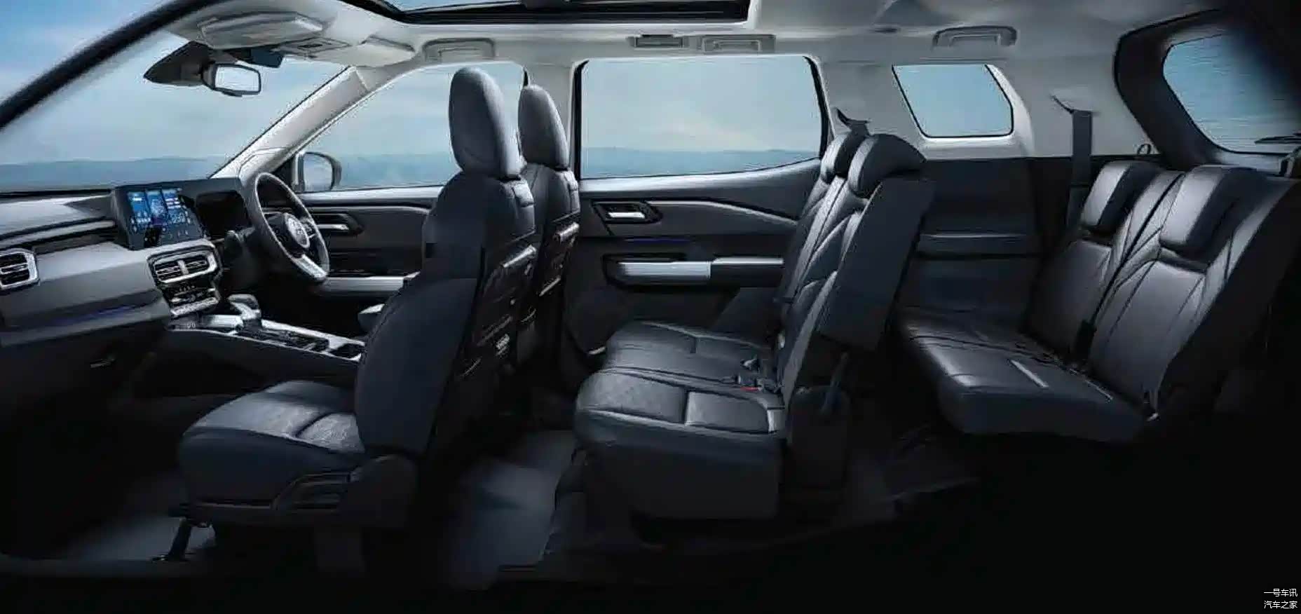 这车前脸改成了半封闭格栅,加了银色保险杠装饰,侧面车顶平直好塞第三排。内饰有12.3寸中控屏和8寸仪表盘,换挡杆从电子拨杆改回了机械档把。后排有出风口和全景天窗,第三排座椅能放倒扩展后备箱。
