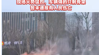 一道奇jcuv酷威济南经十路突发自燃,现场火势猛烈,车辆只剩骨架