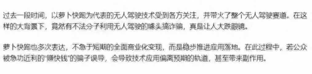 据悉,多个城市曾叫停“萝卜快跑”的商业化运营计划,理由都指向“安全风险”和“政策不明朗”。