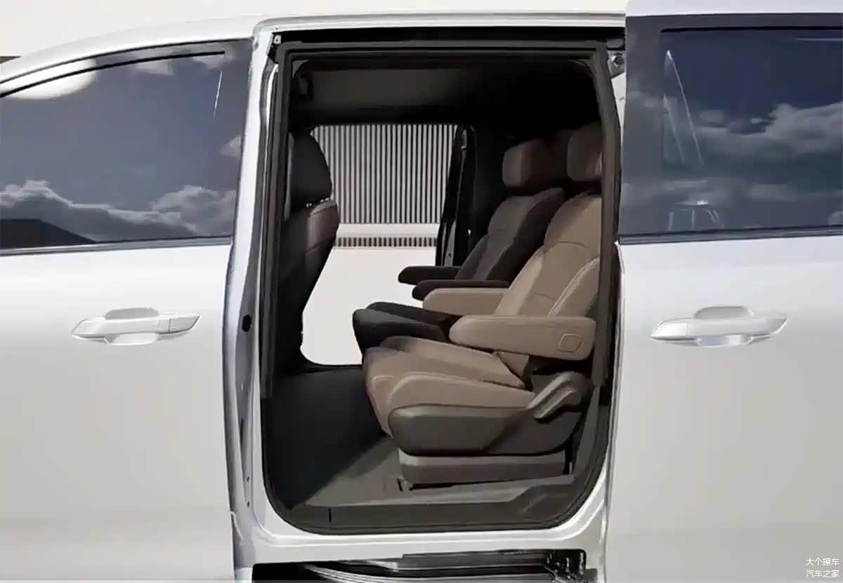 方向盘采用了平底的两幅设计风格,其圆形的气囊盖上装饰有镀铬饰条,给人一种非常独特的感觉。副中控台采用了三维设计,并在其上方配备了杯架以及手机的无线充电板。这款新车的设计特点是后排侧滑门,座椅采用了2+2+3的布局方式,其中第二排配备了两个独立的座椅,并配有双侧座椅扶手。
