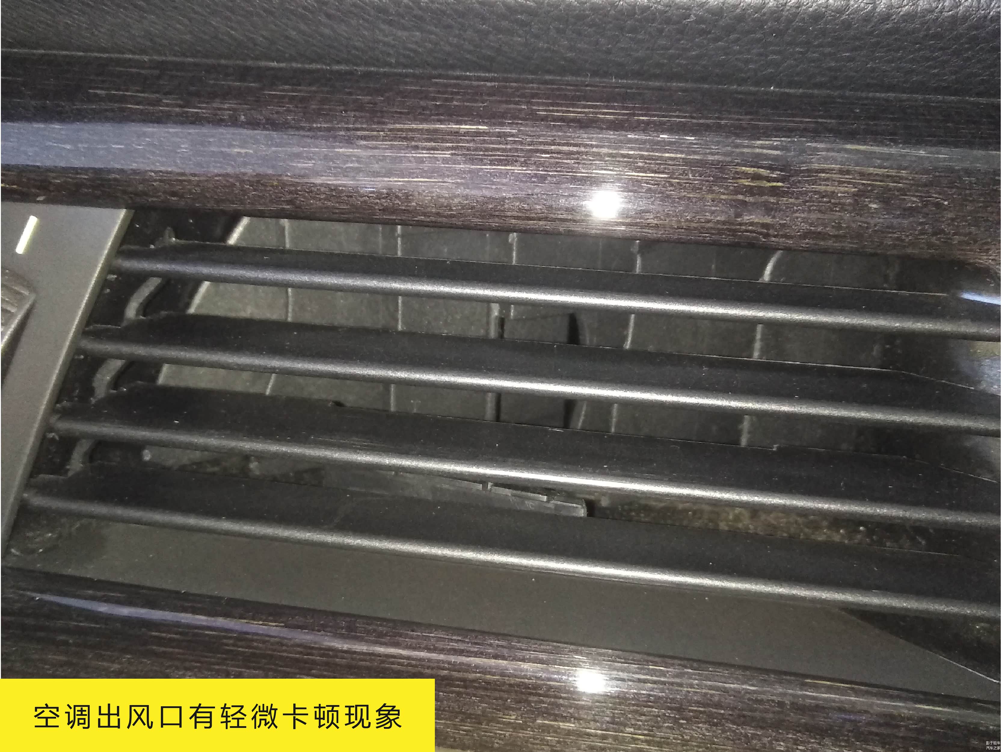 内饰部分的唯一问题,就是上图中空调出风口轻微卡顿现象。从缝隙处看还有液体干掉的痕迹,应该是不小心把饮料滴到上面所致,购车后可以拆下来用水冲冲即可。