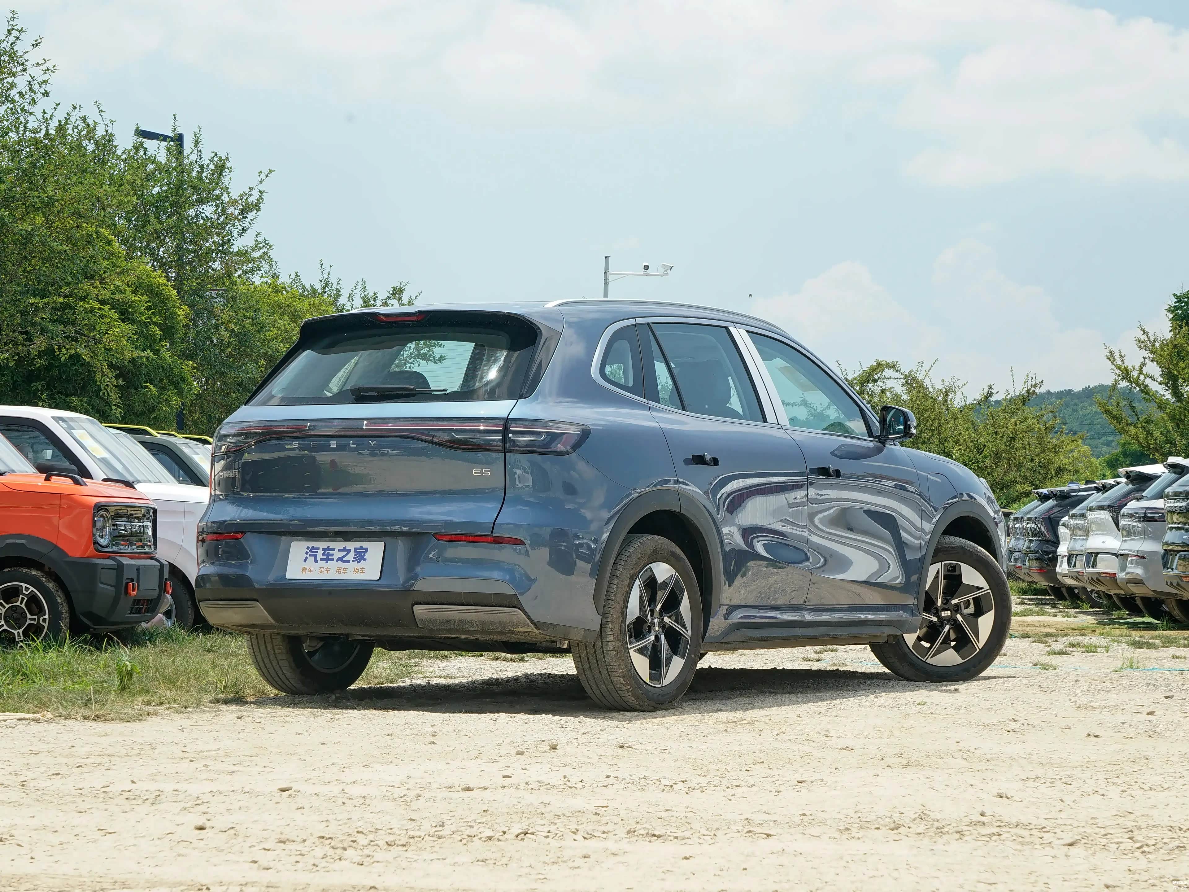 从车身的侧面看,其设计遵循了简洁的风格,线条流畅自然,完全没有拖沓之感。隐蔽的门把手设计不仅增强了车辆的整体外观,而且在行驶过程中能够显著减少风阻,从而提高车辆的续航能力。这款半封闭式铝合金轮毂具有独特的设计风格,并提供18英寸和19英寸两种不同的尺寸选项,用户可以根据个人喜好和风格进行个性化搭配。银河E5车型在尺寸上的差异显著,车身的长、宽、高分别为4615mm、1901mm和1670mm,而轴距更是高达2750mm。这样的设计使得车内空间变得更为宽敞,无论是前排的驾驶员还是后排的乘客,都能享受到舒适的乘车体验。