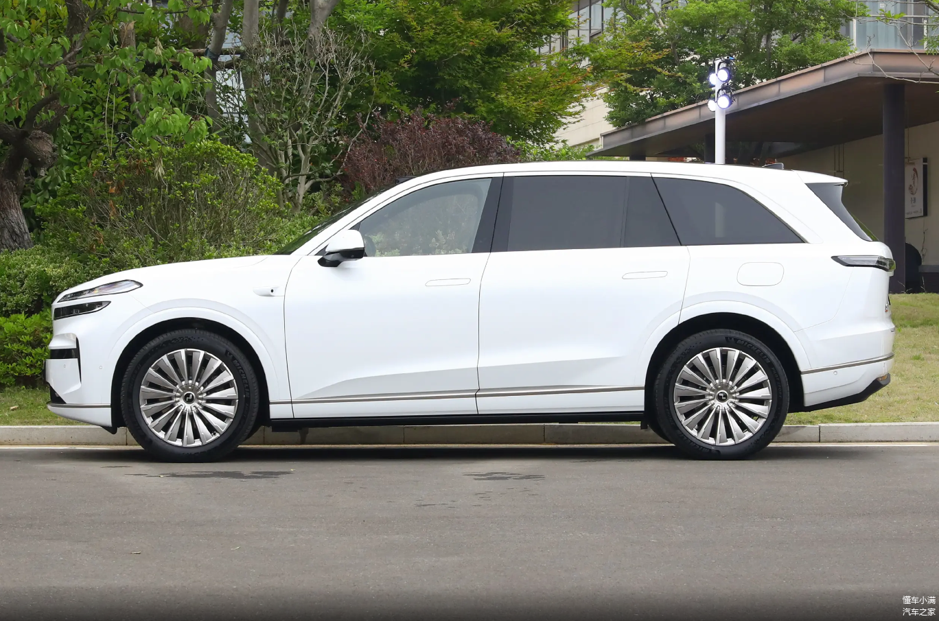 而车身侧面就比较简单了,整个车身没有任何多余设计,家族式的双上扬腰线使其稳健而不失动感,21英寸的多辐式轮毂也符合自身定位。并且乐道L90尺寸并不差,5145*1998*1786mm的长宽高和3110mm轴距在大型SUV阵营也算是主流了,各位也别觉得这车价格便宜是不是哪些地方缩水了。到了车尾同样采用大立面处理,尾灯组也算是乐道品牌的家族语言,不过官方介绍称内置428颗超红光LED灯珠,并依旧具有交互功能,因此要比乐道L60有高级感。