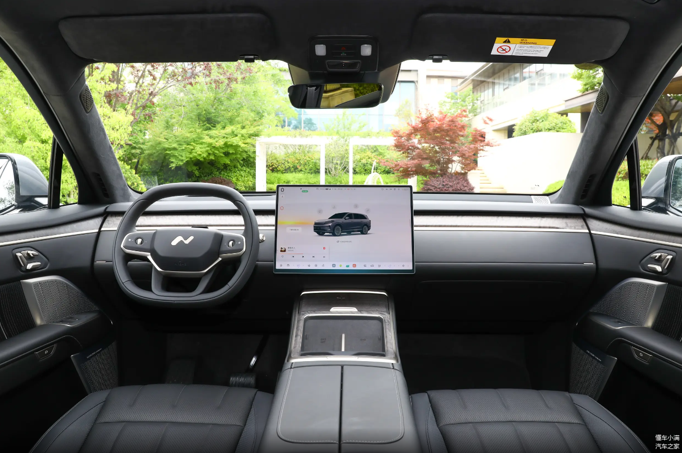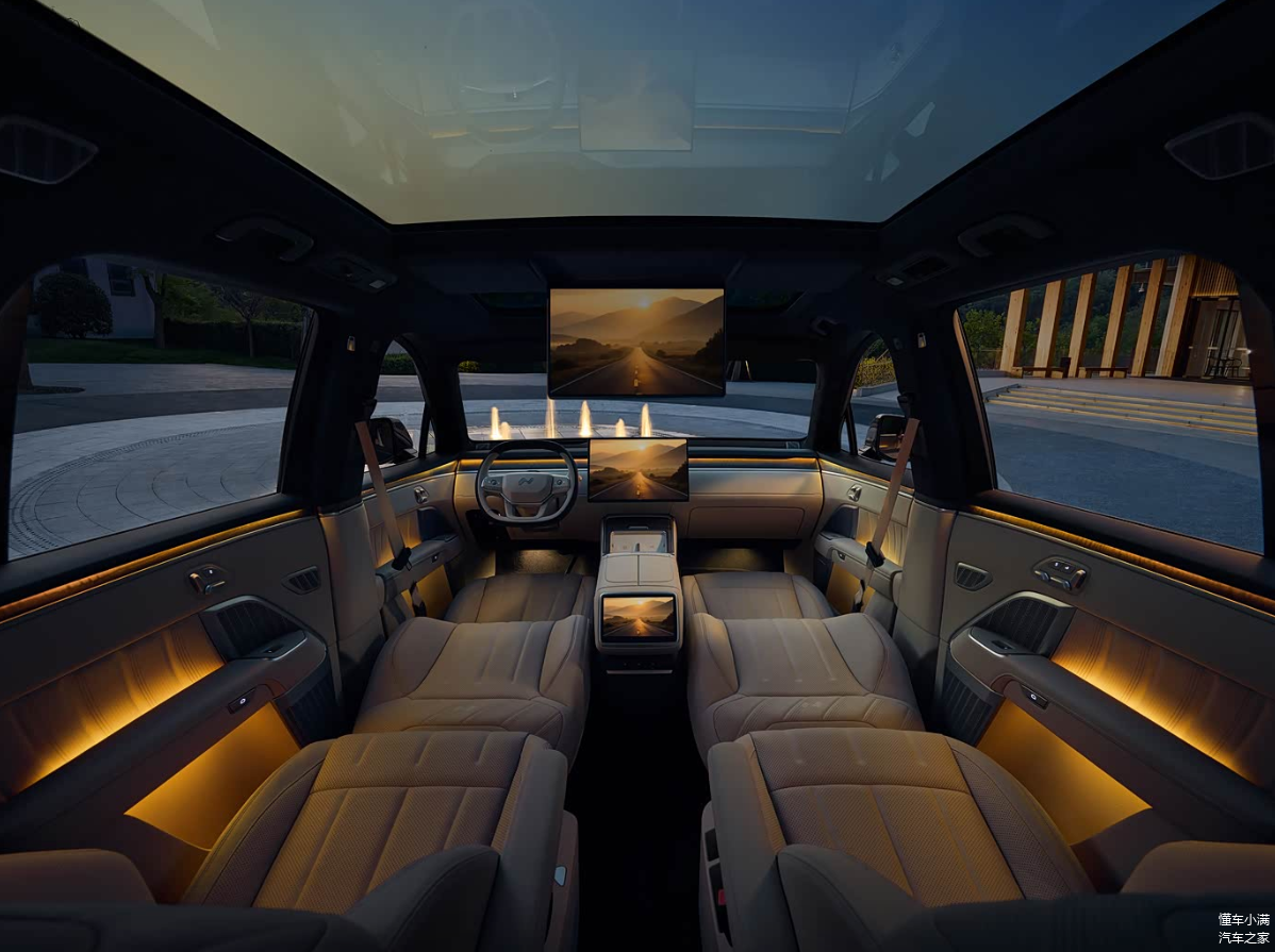 内饰方面也带来不少惊喜,全车环抱式设计的贯穿仪表台,虽说简约到除了中控屏之外再无任何显眼设计,可通过不同材质应用却营造出较强豪华氛围,甚至感觉一点不比蔚来旗下车型差。而且对驾驶员来说即便没有仪表盘也不会影响实用性,因为乐道L90配备了35英寸AR-HUD抬头显示系统,再给到17.2英寸3K中控屏,车辆信息是随时呈现在眼前,并且要说屏幕数量,新车还有后排17.3英寸3K吸顶屏和8英寸二排控制屏,足以满足用户对于智能交互体验的较高要求。