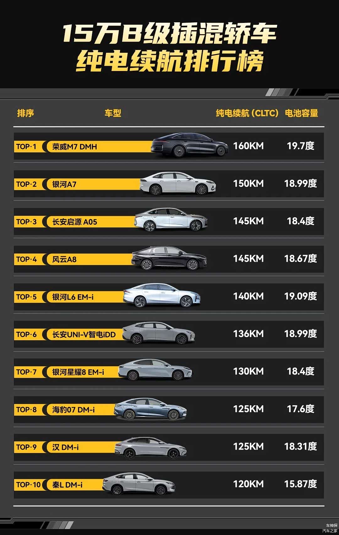 对应的这几家车企可以说是中国混动技术第一阵营了,纯电续航分别做到了125公里和130公里,按一天来回通勤20公里,基本能做到一周一充的效果,妥妥的15万级超长纯电续航代名词。
