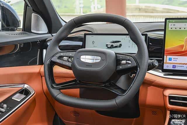 内饰设计部分,新款(2026款)吉利博越相较老款车型的内饰进行了修改,其中控台区域搭载了四幅式方向盘、10.2英寸液晶仪表、14.6英寸悬浮式中控屏。