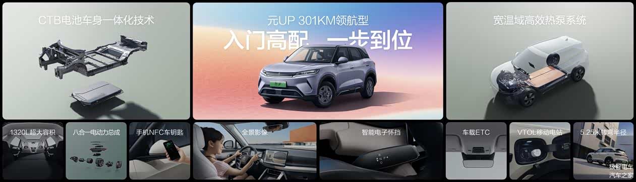 今年 300 公里小型电动车需求猛增,调研显示用户多为城区代步,出行半径常 50 公里内,部分日均不足 30 公里,300 续航够一周用。但当前市场可选少,要么配置寒酸要么是小两厢,年轻人想选更大、更安全、更好开的小型精品 SUV 基本无货。此次元 UP 加推 301KM 领航型,专为这群年轻人定制,“7 字头” 价格给足即时满足。