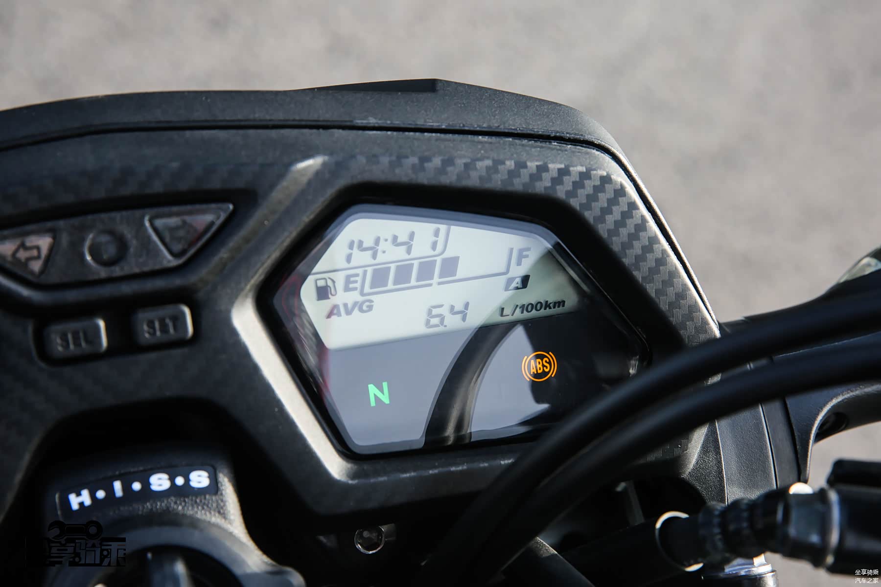 右侧屏幕可现实空挡灯和行车信息,诸如平均油耗、瞬时油耗等,但必须使用仪表上的按钮进行切换,如果车把按键可以实现此功能就更好了。