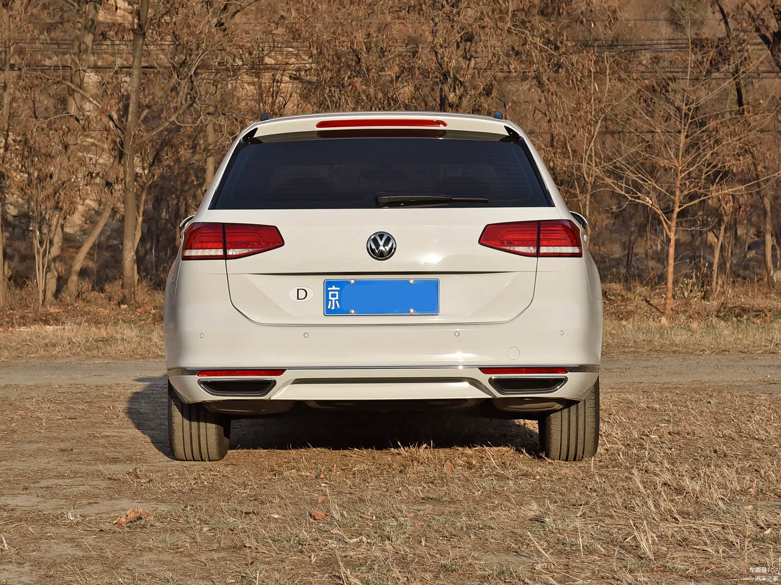尾部唯独可以说一说的,就是把上一代迈腾旅行(帕萨特B7旅行)单边双出的排气口,调整为了双边单出的样式,与后保险杠一体式的设计和排气口镀铬边框的使用,整体视觉效果更加运动,不过别高兴太早,接着看下一张图。