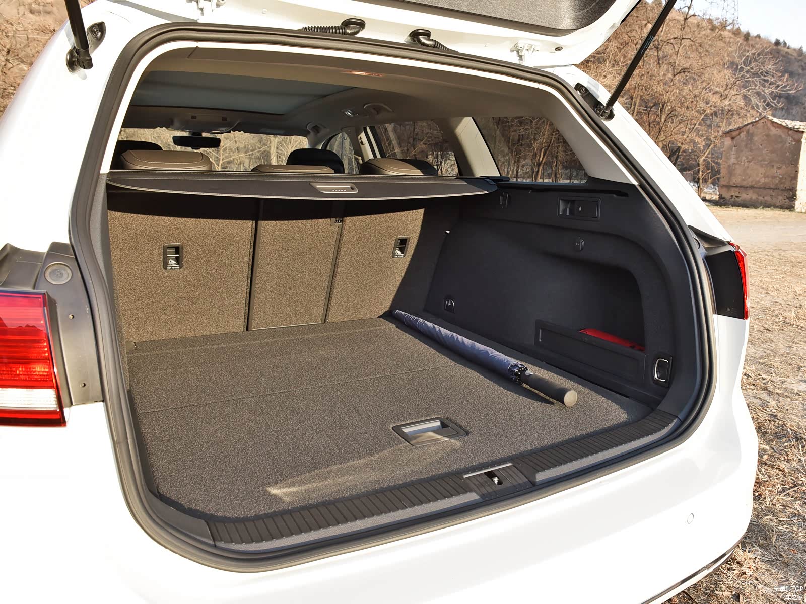 重点来了,开启蔚揽的后备厢,你会看到一个空间宽大并且造型平坦的后备厢,其纵深从放置的直把伞就可以衡量,标准容积是650升,最大可扩展至1780升,而三厢版车型后备厢容积仅为533升,是不是感觉弱爆了?作为一辆家用车来讲,童车、高尔夫球包甚至去宜家买个茶几也能轻松应付,在实用性上完全碾压三厢车,而另我至今费解的,就是国人为什么钟情三厢车当做家用车?