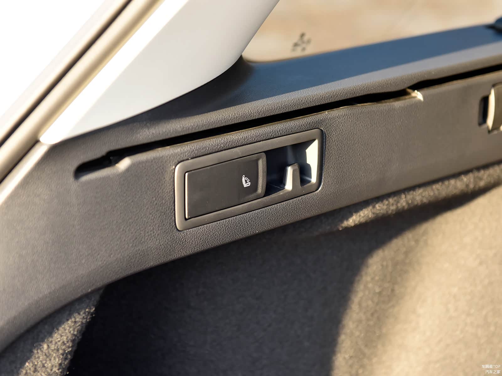 后备厢两侧都设计有手动后排座椅放倒拉手。