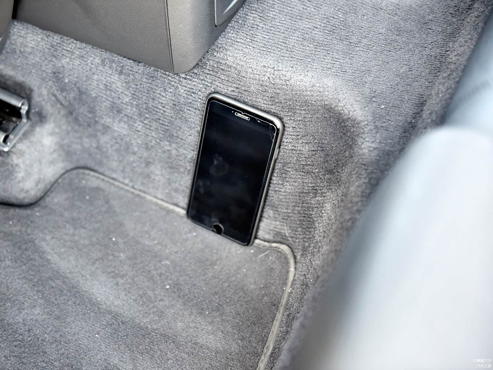 由于蔚揽有四驱车型,所以后排地板中央的凸起高度比一部iPhone 6 plus还高。