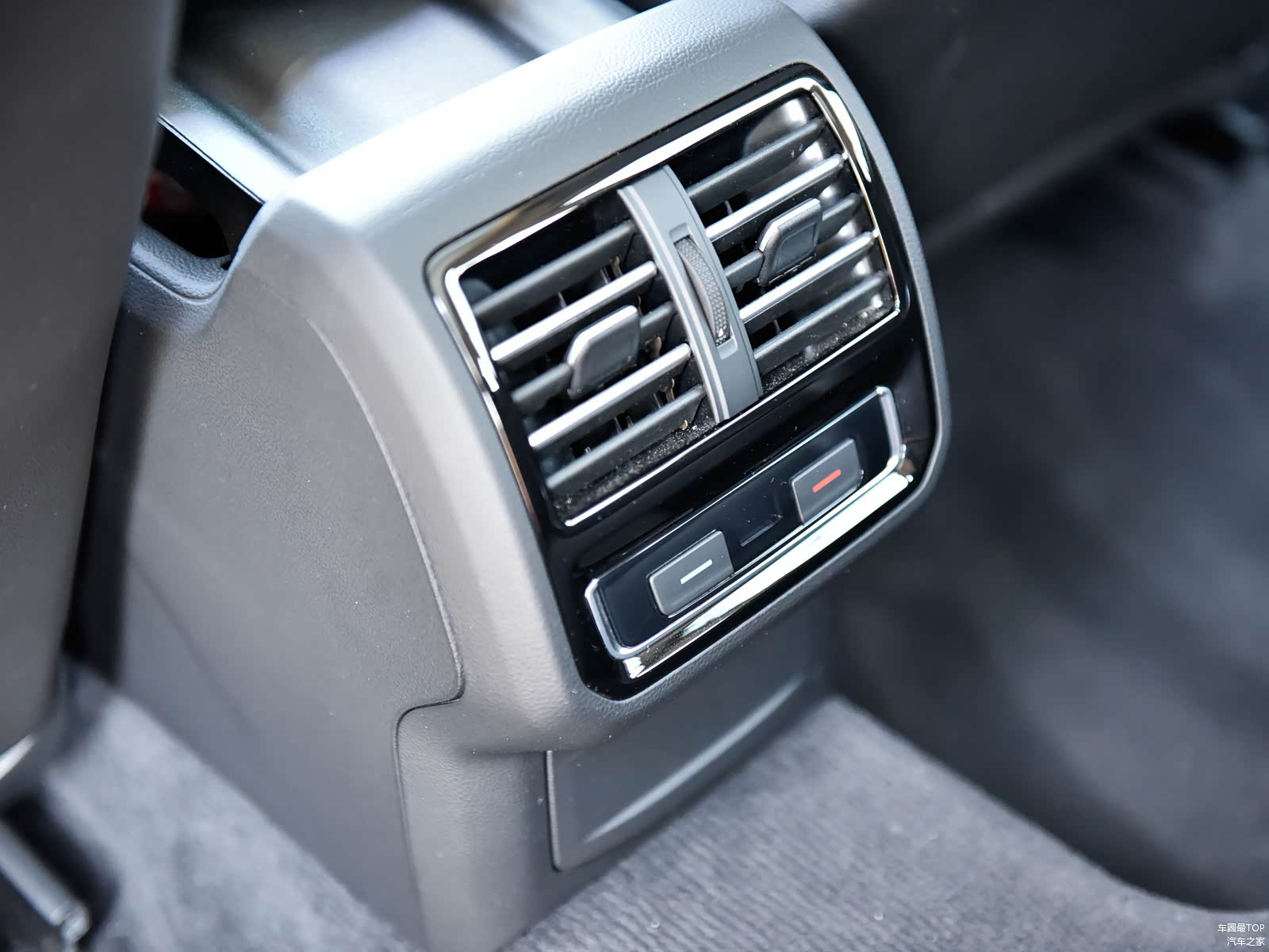 后排空调出风口和温度调节面板。