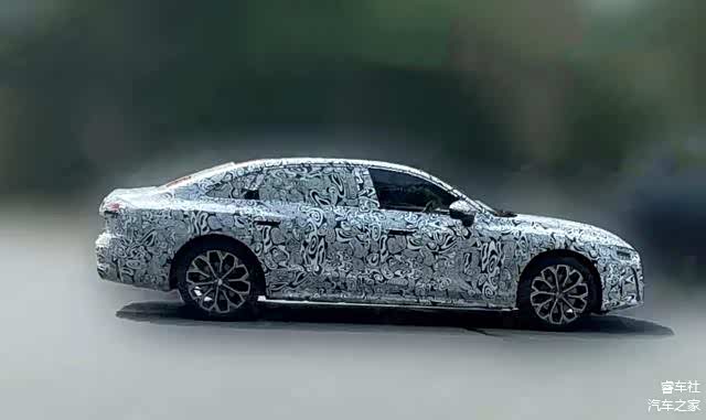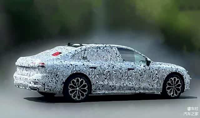 新车谍照侧面非常修长,因为大部分覆盖拉花,无法清晰观察腰线的设计细节,不过相对突出的下裙线非常醒目,也塑造两个更为立体的轮廓。海外版的腰线相对复杂,多根腰线勾勒出车身侧面的起伏,更加具有肌肉感。国产版因为加长车身,更加具有挺拔气质。