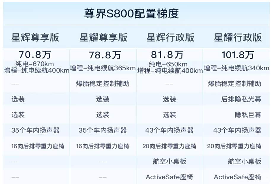 内部空间上,车辆预计会提供4座、6座和7座等多种座椅布局,参考尊界S800内饰的奢华程度,我猜测尊界L900的内饰可能也会有过之而无不及。