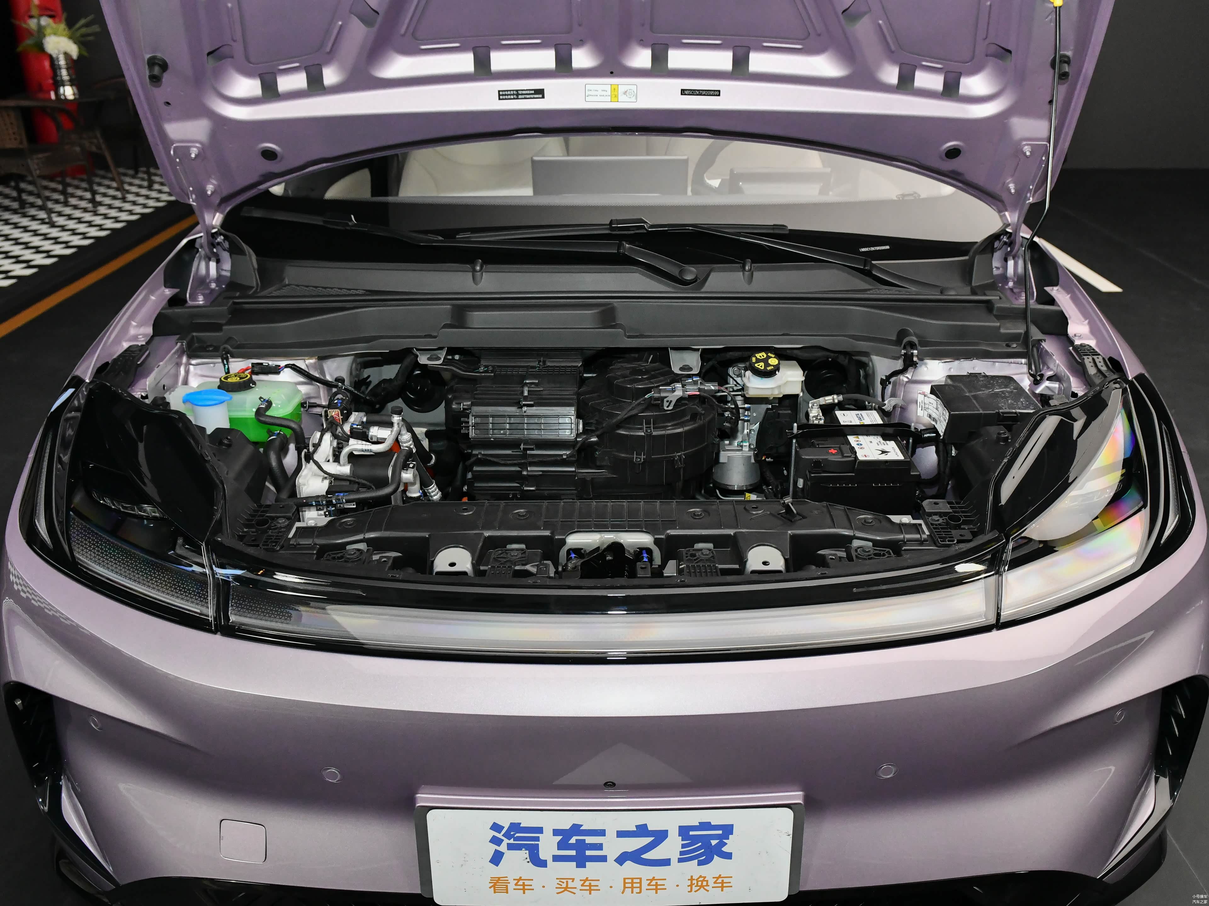 格栅两侧翼子板位置设计有垂直布局的导流槽,能够提高空气动力学表现;底部配备有尺寸比较大的梯形进气口,内部使用了横幅式结构进行装饰,点缀出了车头的层次感,同时也让整个车头的造型足够大气。