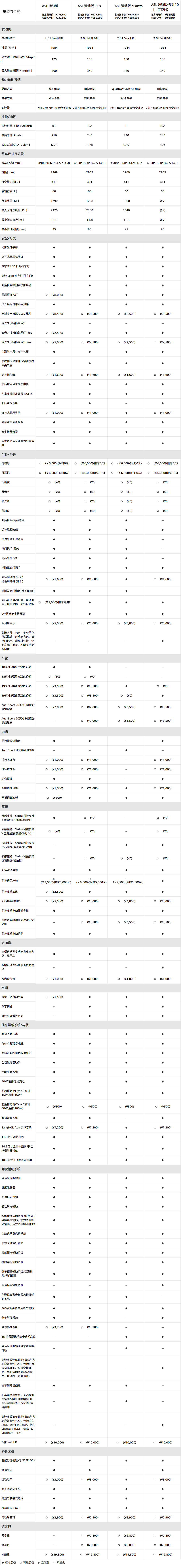 附:2026款一汽奥迪A5L官方配置表(点击下图可放大观看):