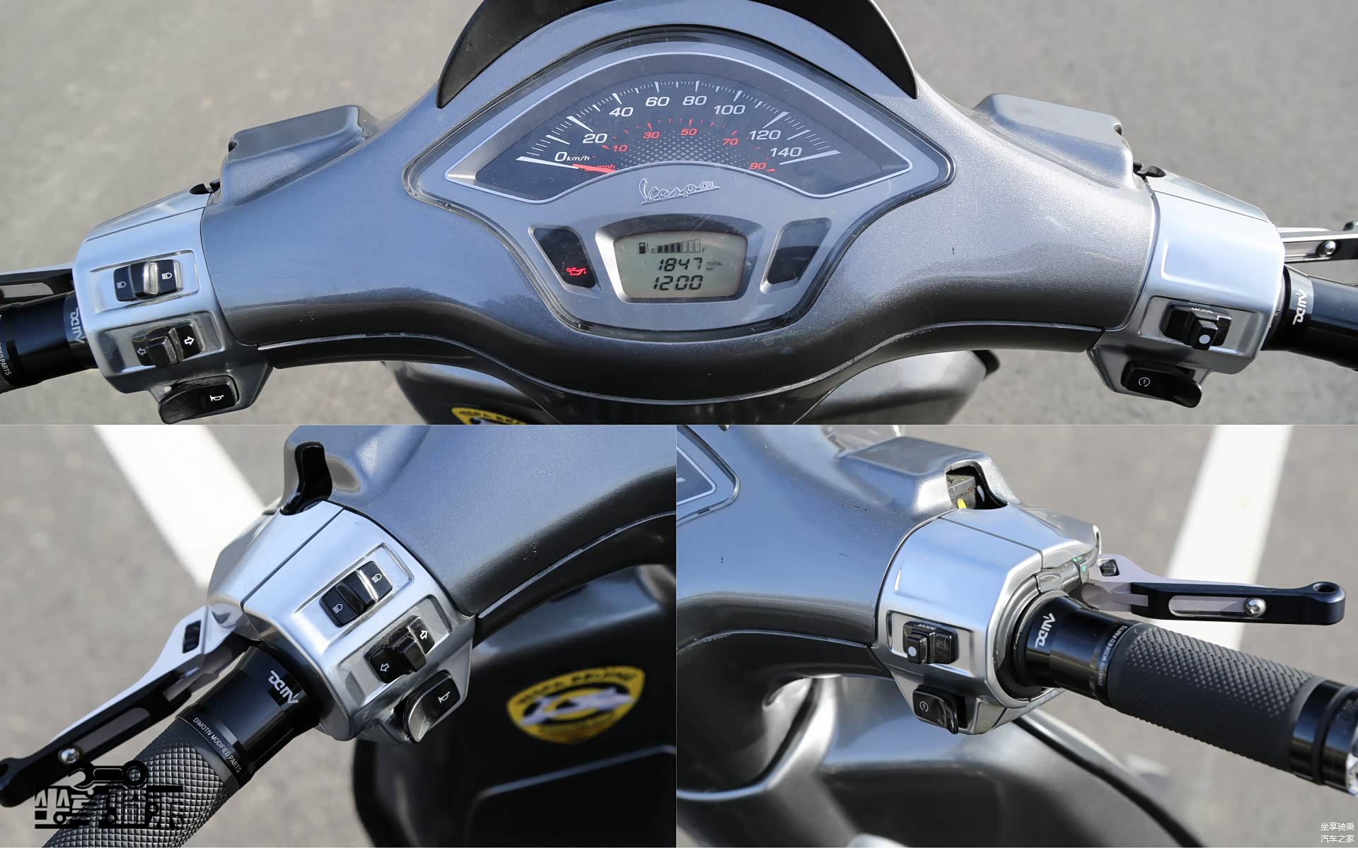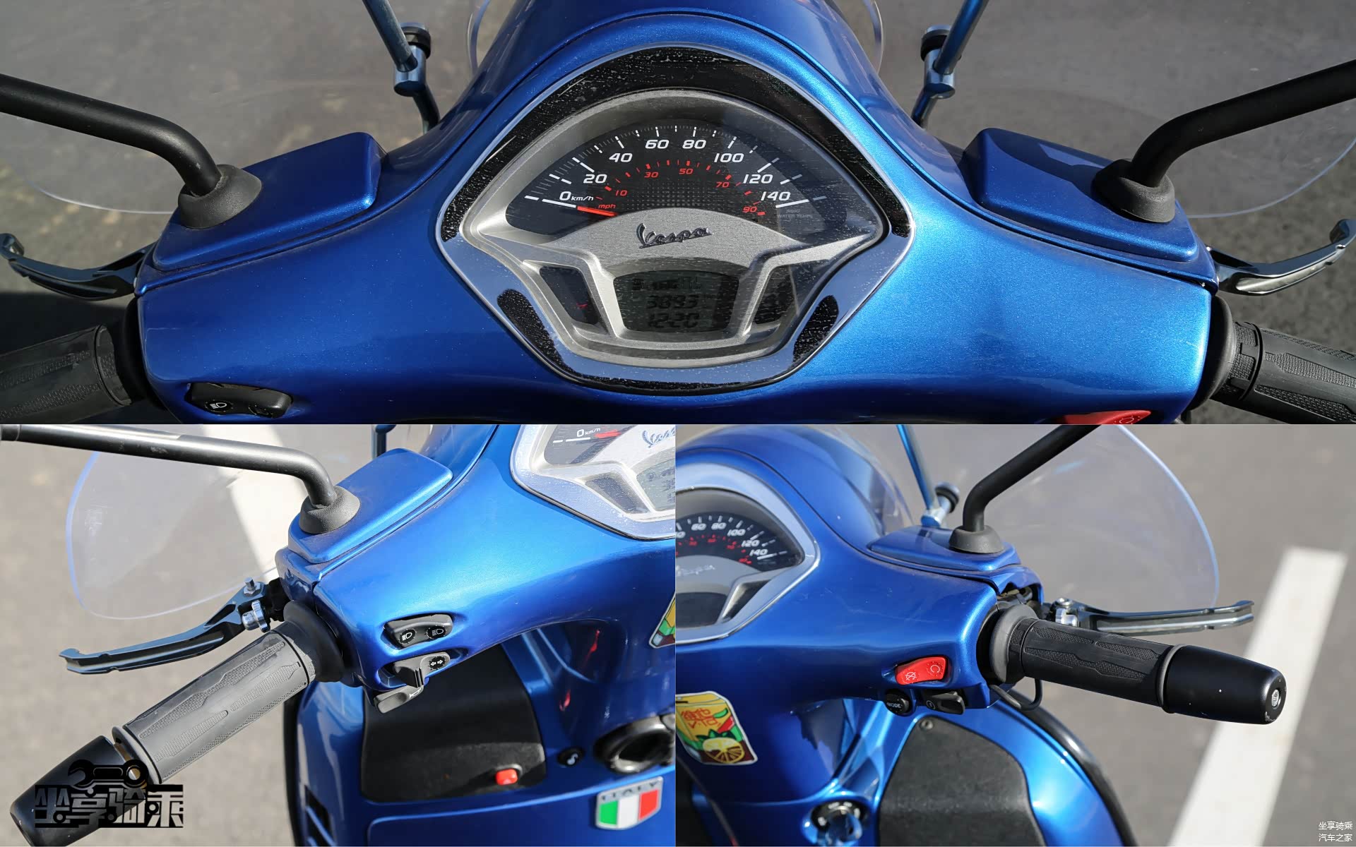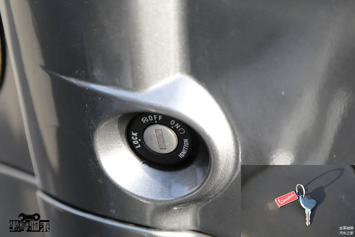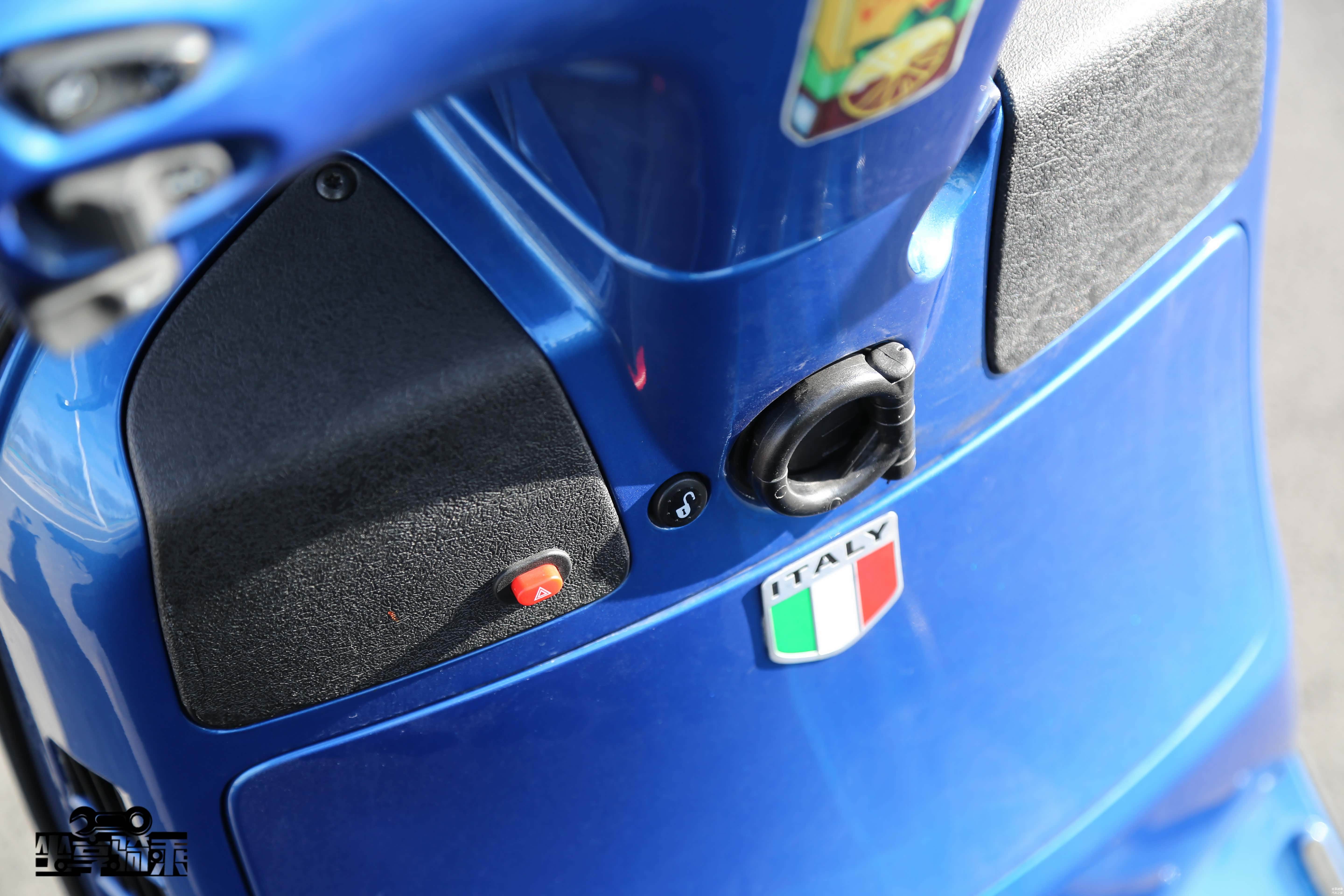 Vespa300车型的按键嵌入在饰板中,整体效果更加简洁,颇具大厂风范。增设了发动机熄火开关。