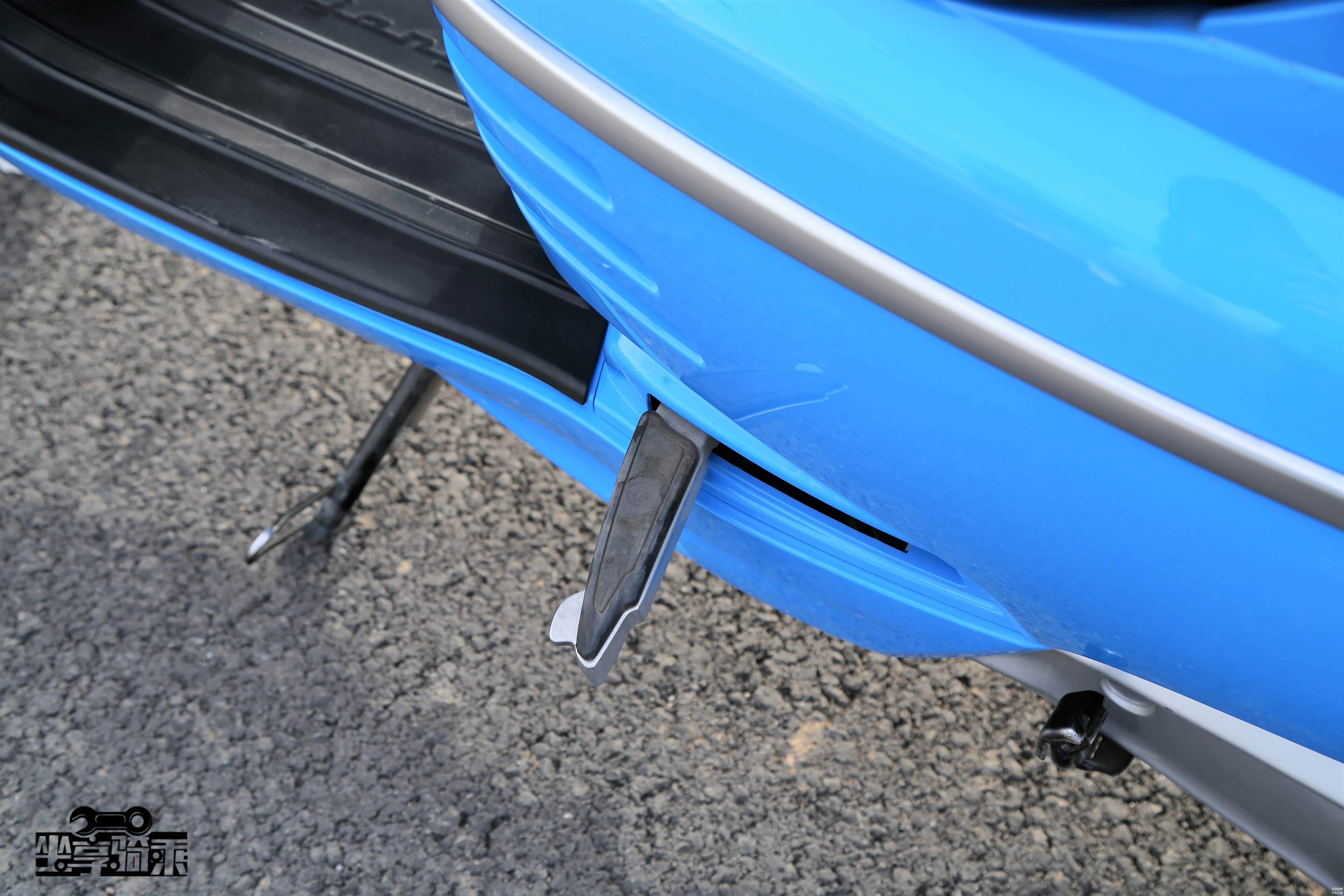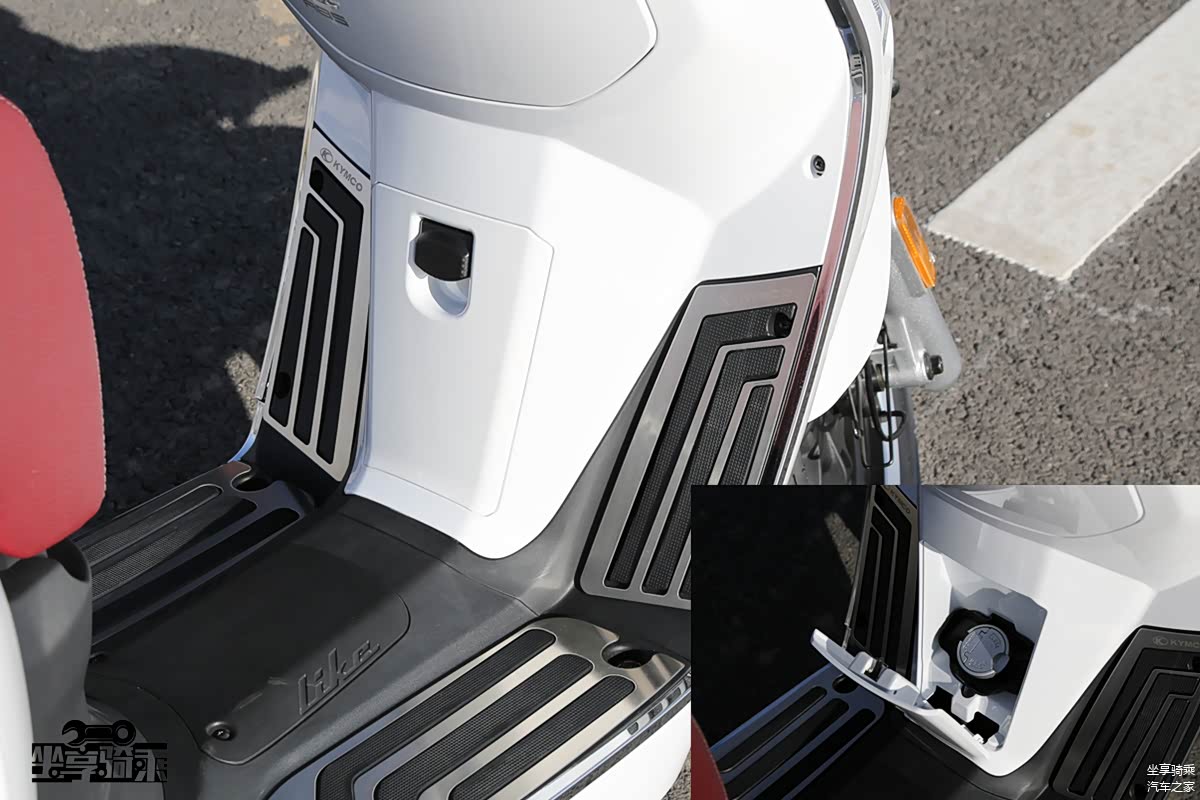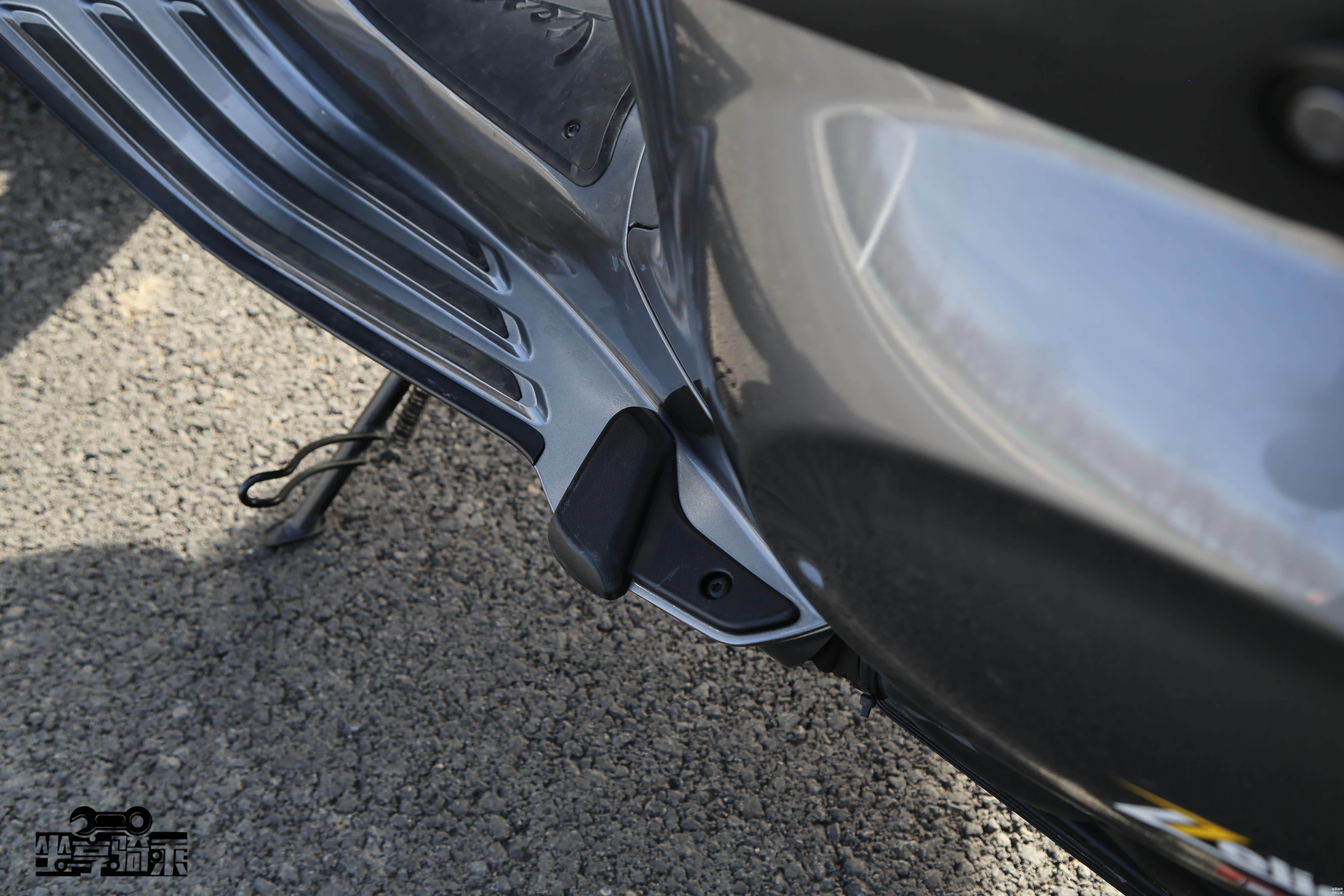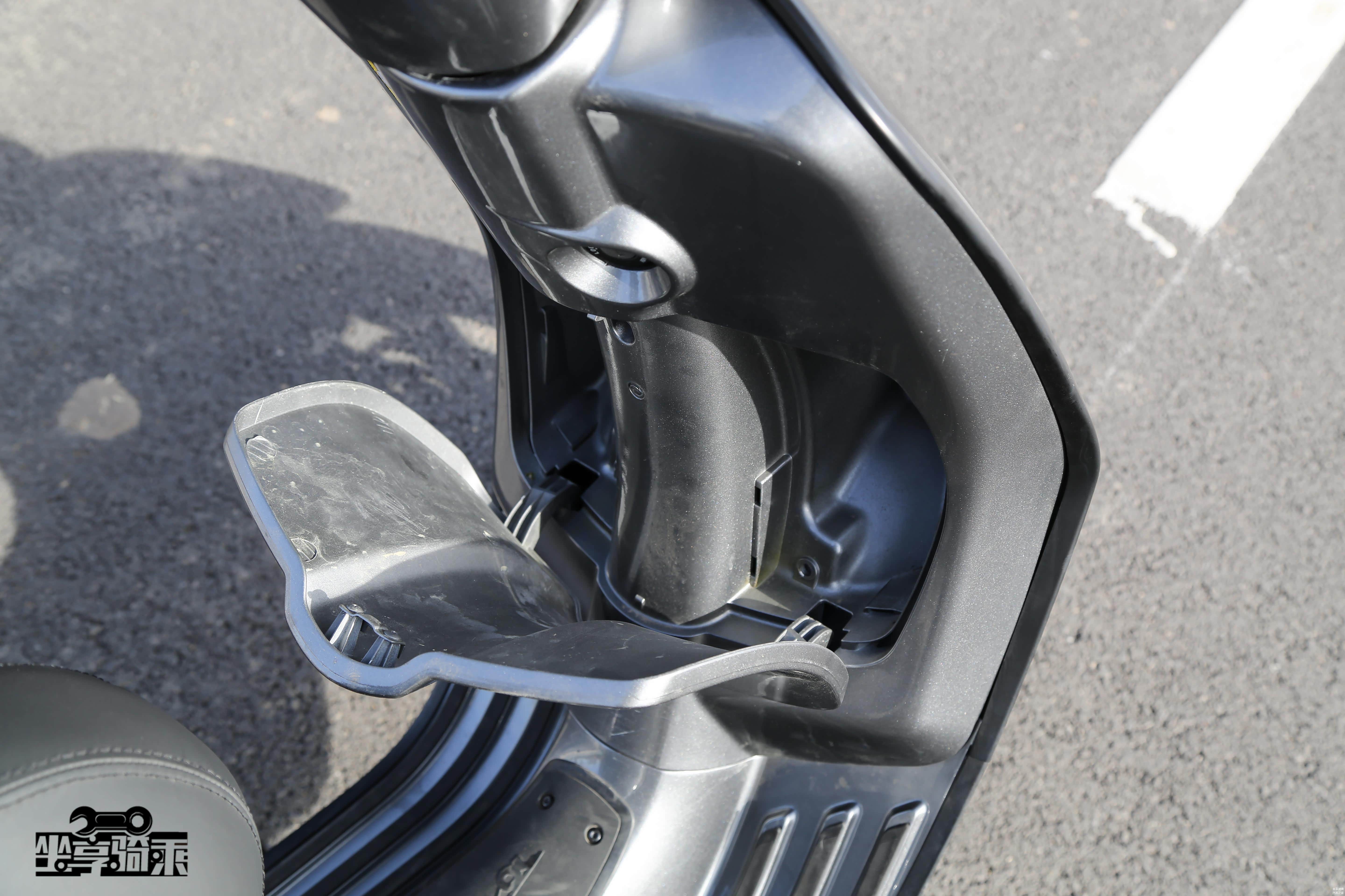 虽然整体造型、骑士坐姿神似欧系踏板车,但小细节还是像日系踏板车看齐,一按就能自动弹出的“飞旋脚踏”非常方便。上文提及的钥匙门锁闭功能也是日系踏板车上常见的功能。