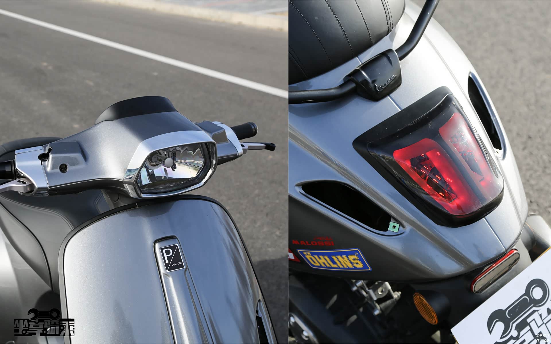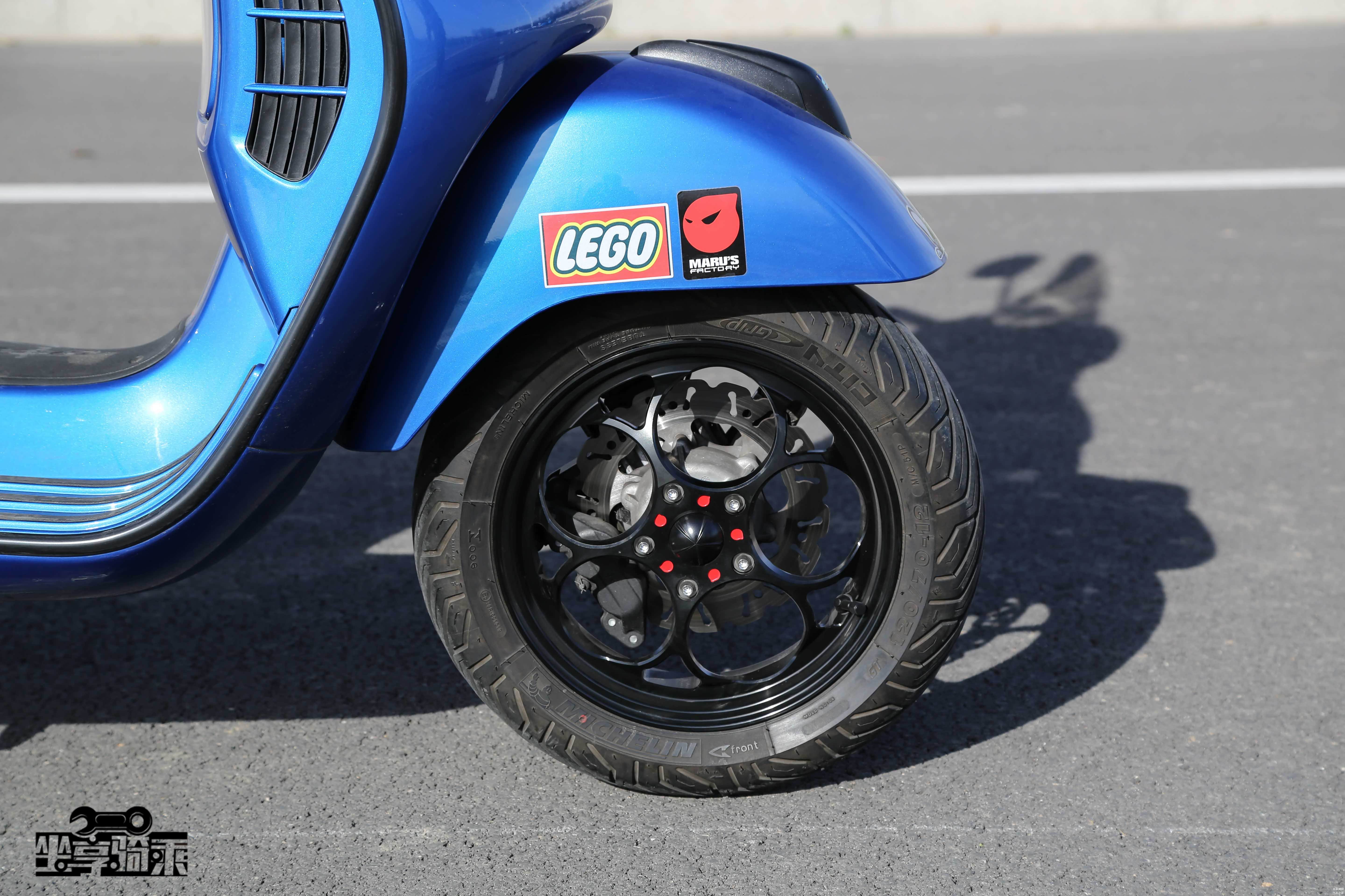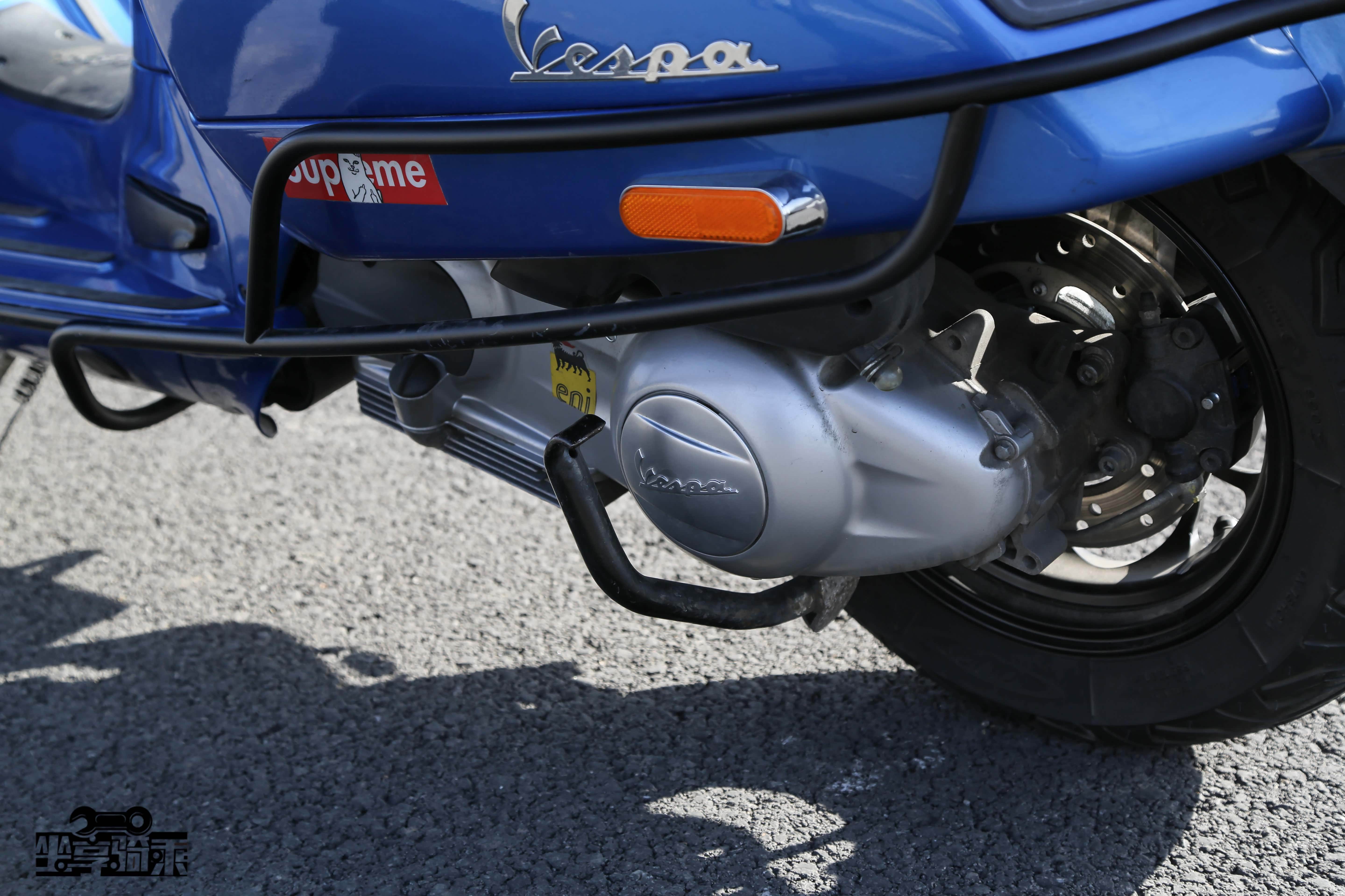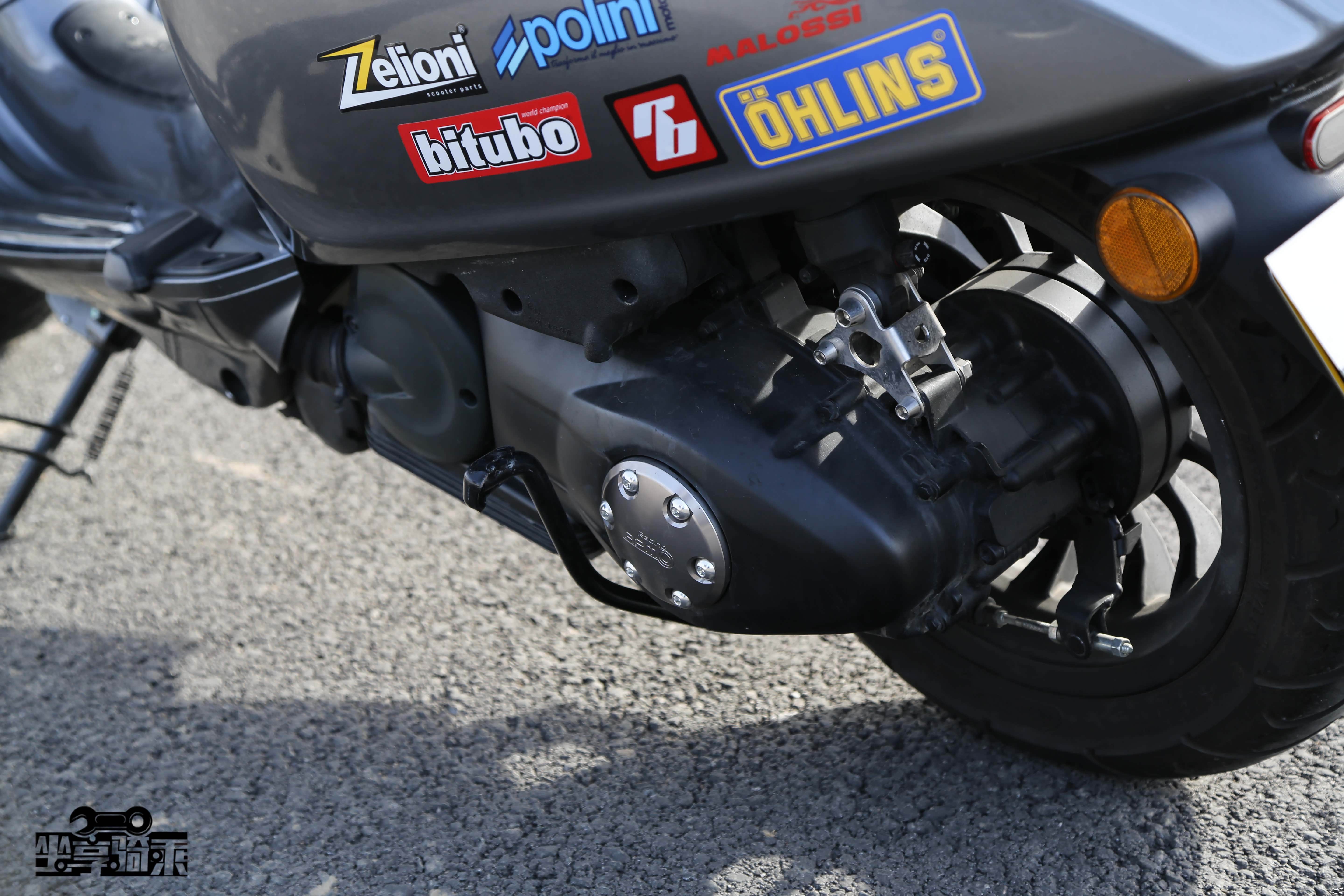 Vespa300后轮为碟刹。测试车改装了Remus狼头排气尾段。