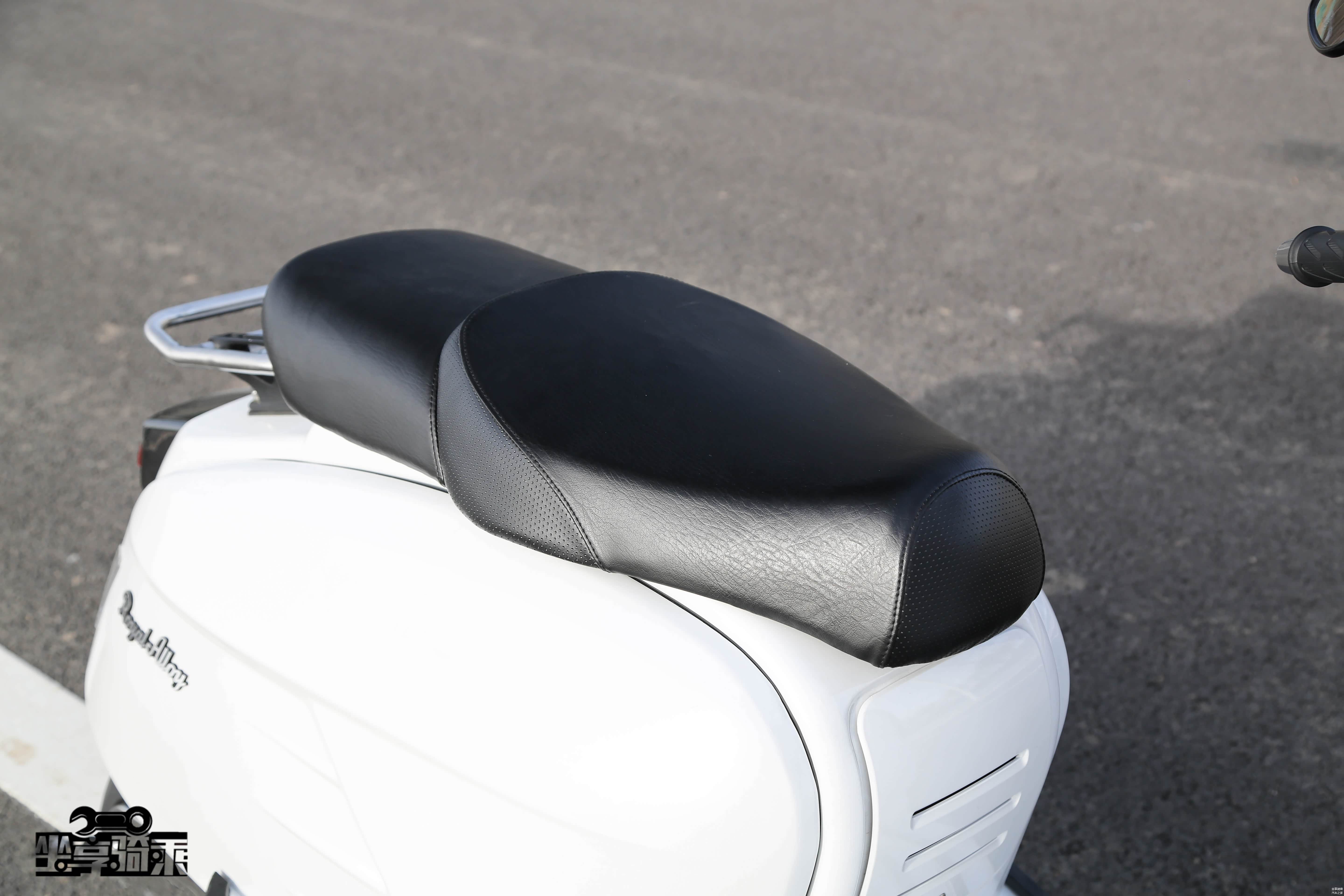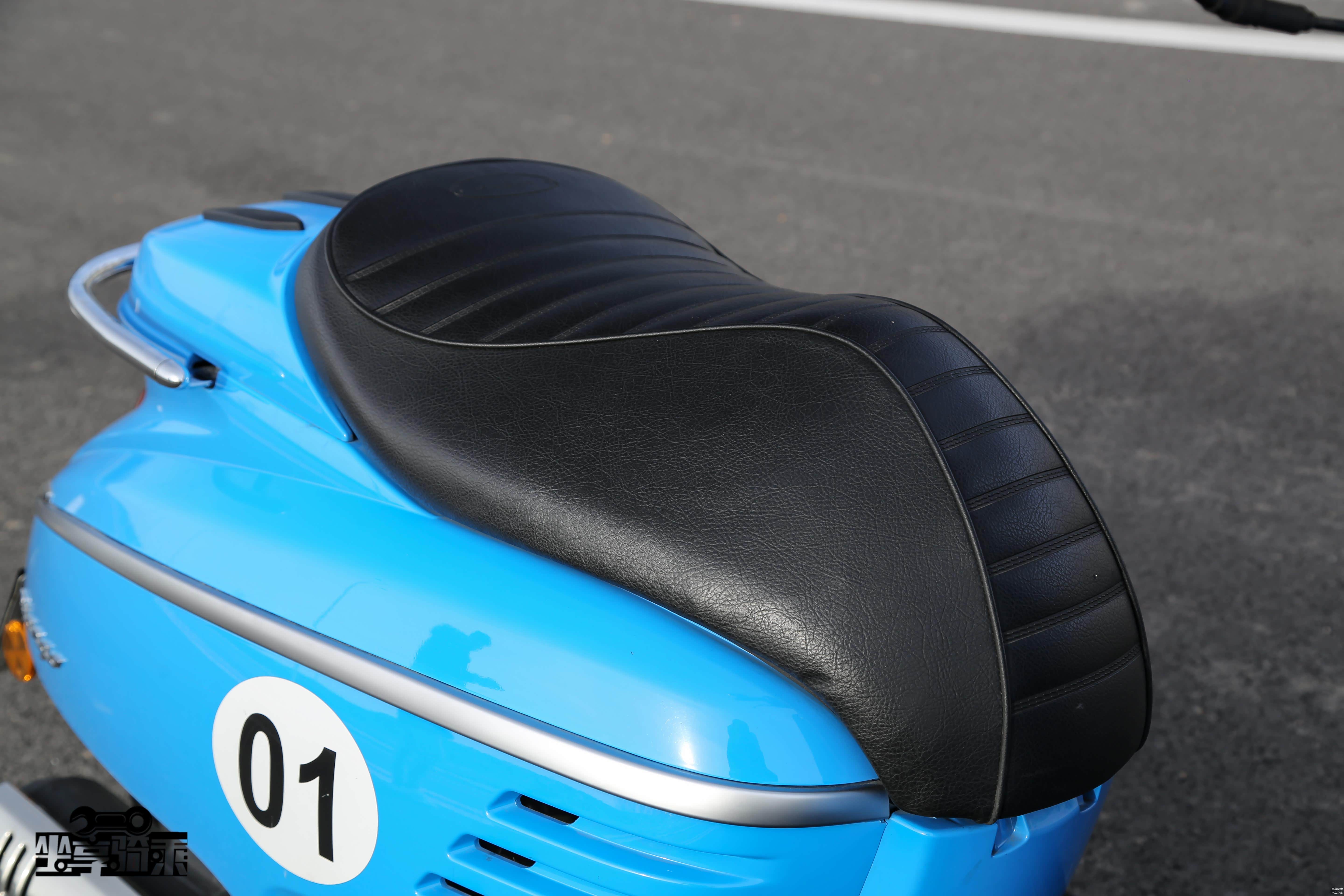 姜戈运动版采用了单座设计,座垫十分宽厚,舒适感上佳,皮革缝线材质也颇具质感。