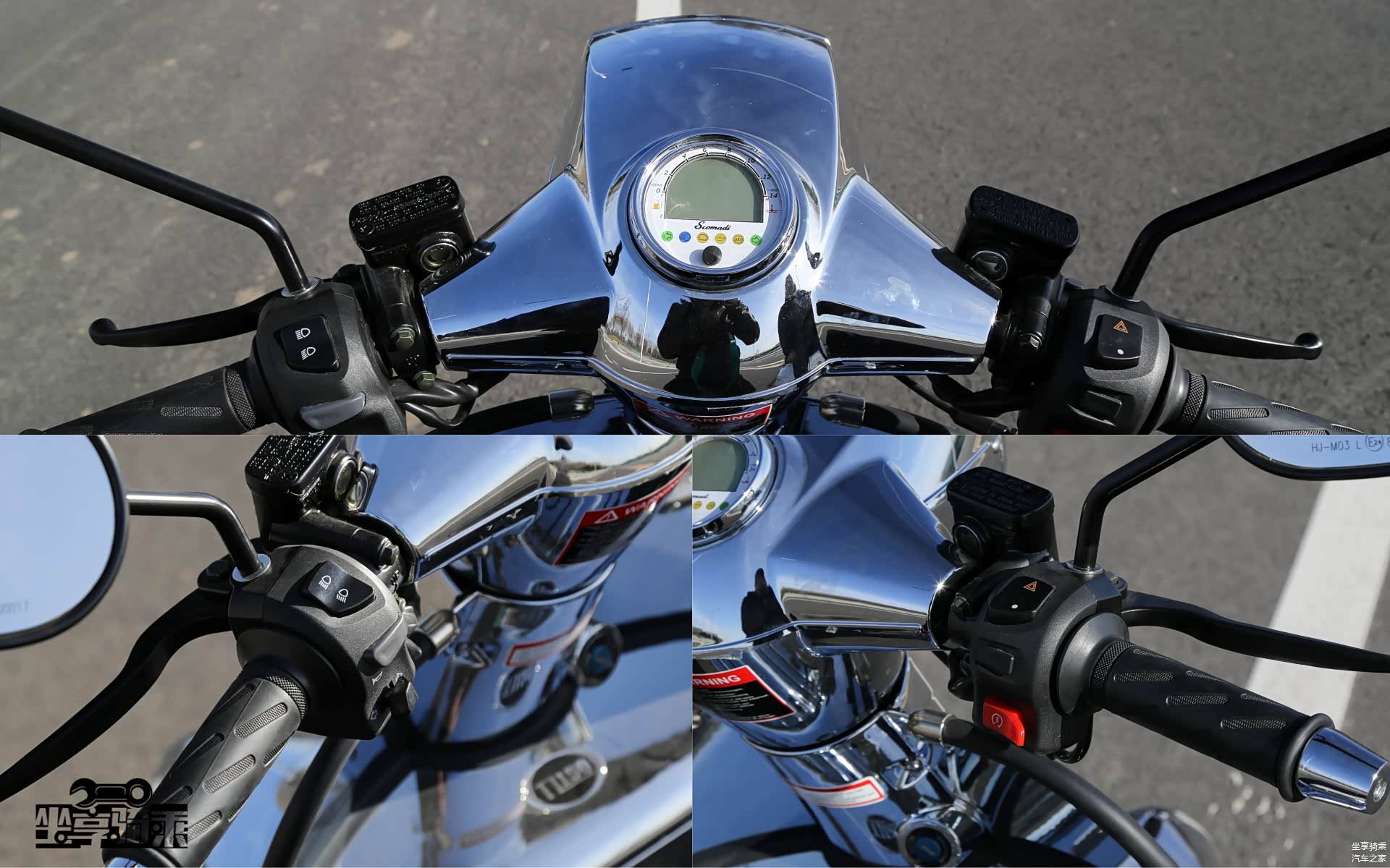 Scomadi150由于工程测试车的缘故,我们无法点亮仪表。其配备一块单色液晶仪表,尺寸略小。