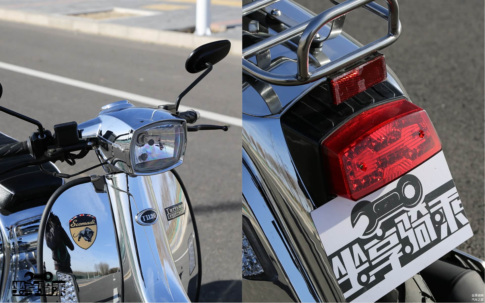 Scomadi150原汁原味的传承了Lambretta的外观造型,车灯同样如此,大灯为卤素光源,尾灯为LED光源。