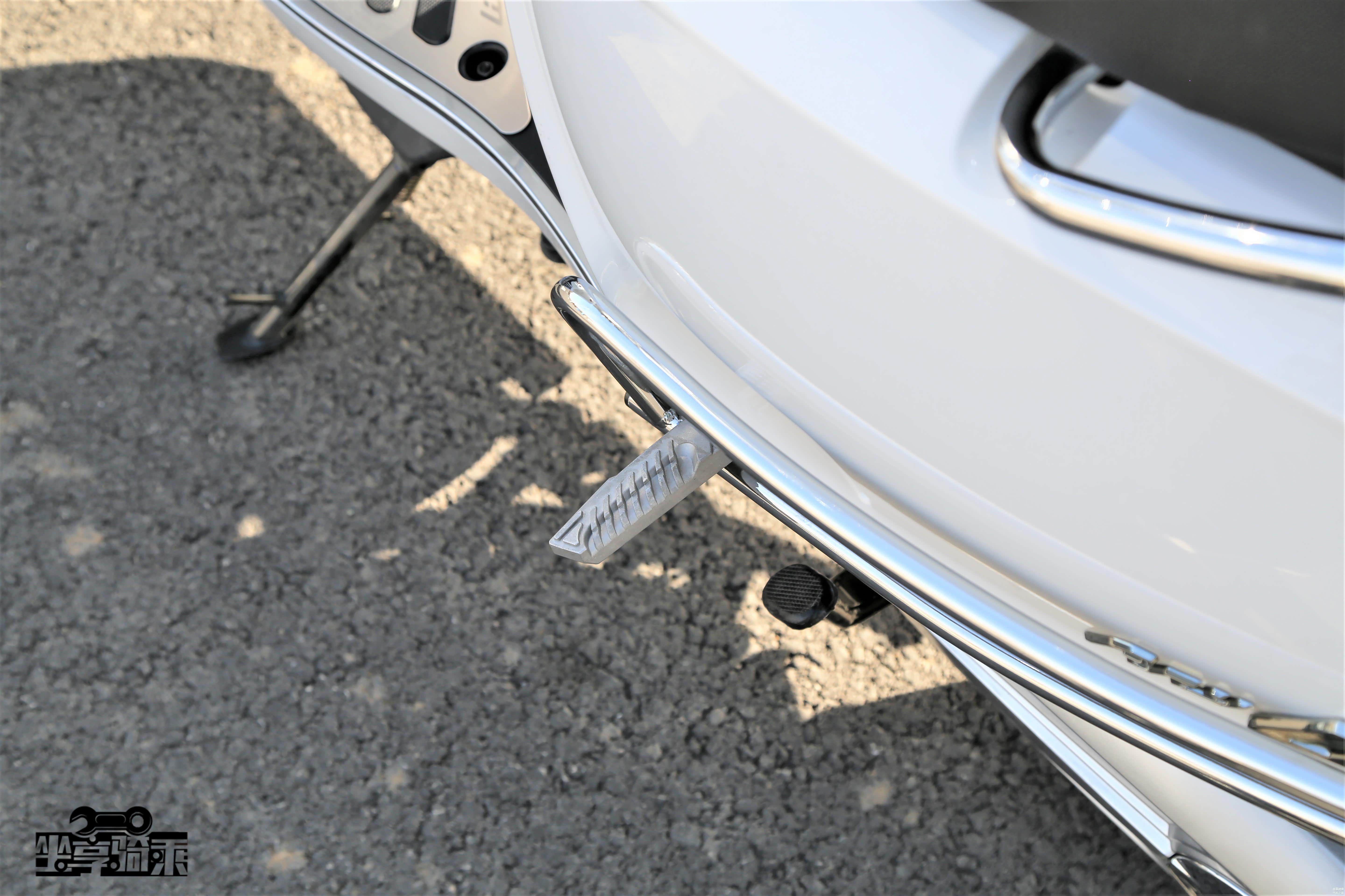 Vespa150乘客脚踏为固定式设计,目测舒适度欠佳。