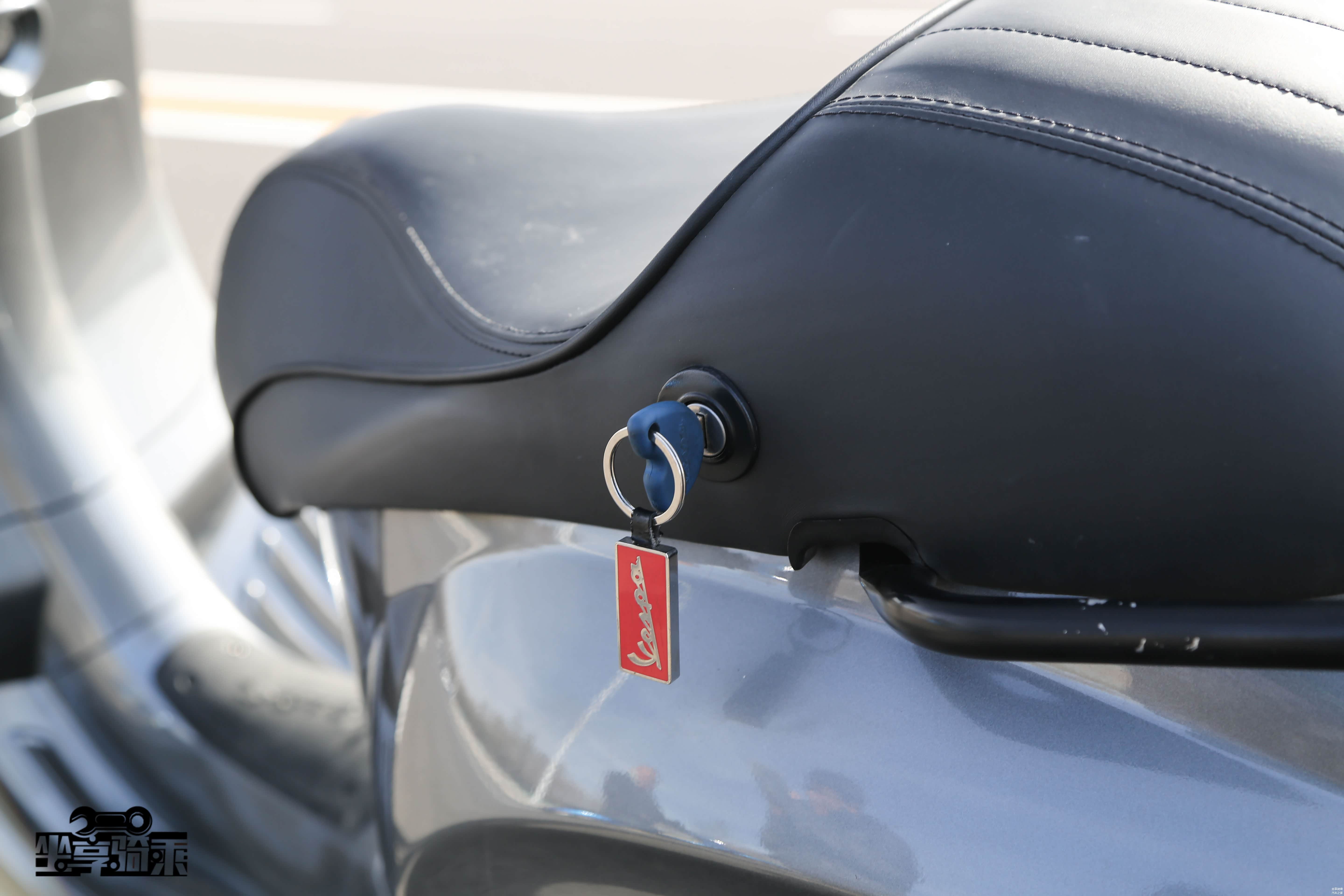 Vespa150改装了单人座垫,必须在侧方插入钥匙才可开启,不够便捷。