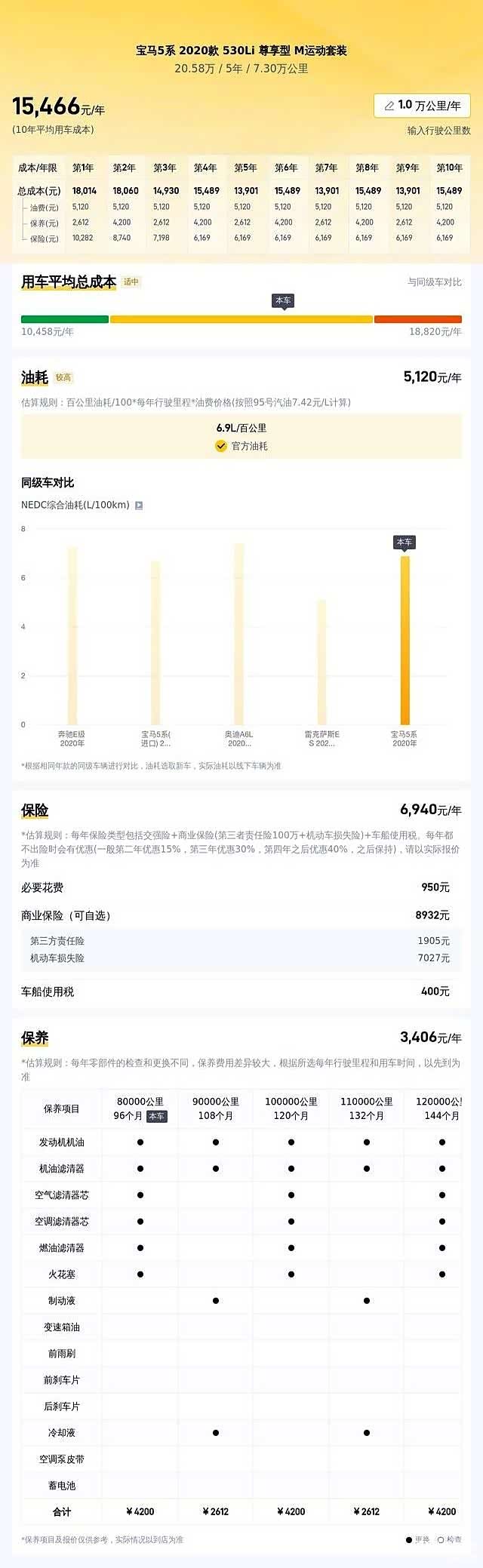 这台宝马530Li的后期使用成本,可比咱们普通家用车要高得多。