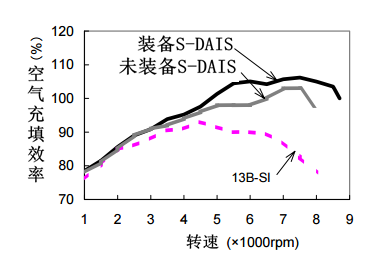 从上图可以看出来,在中、高转速区间,S-DAIS装备后的充填效率有了明显的提升,当然这还有进气口面积扩大的功劳在里面。