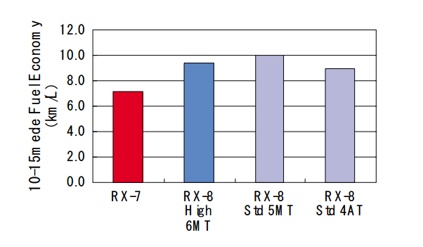 RX-7和RX-8的油耗对比图(基于日本的10-15模式测定)