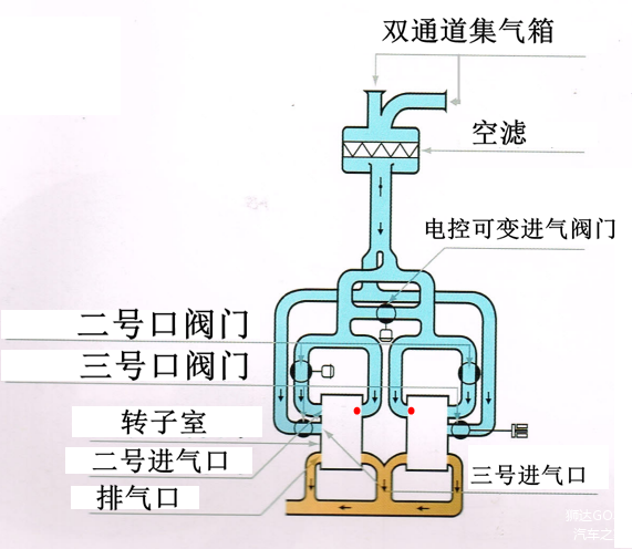 (3)500-6500转:在(2)的状态之上,双通道集气箱的2条进气管都打开,降低进气阻力。