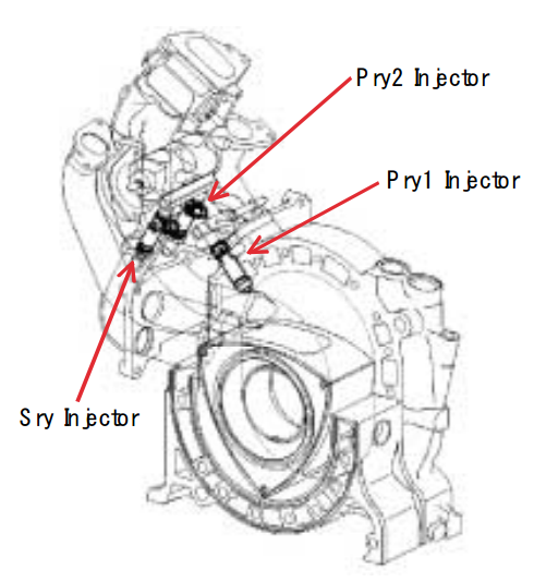 13B-MSP(High Power)为了兼顾发动机的反应、动力、燃油经济性,装备了3个喷油嘴。