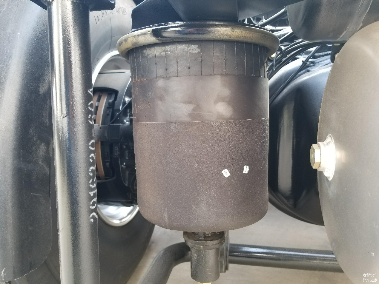 该车最大的亮点就是气囊悬挂的后桥和单胎。大单胎的学名叫:宽截面轮胎,轮胎是标准截面是385mm及385mm以上轮胎。该车使用的这种单胎是425\65R22.5的双钱轮胎。