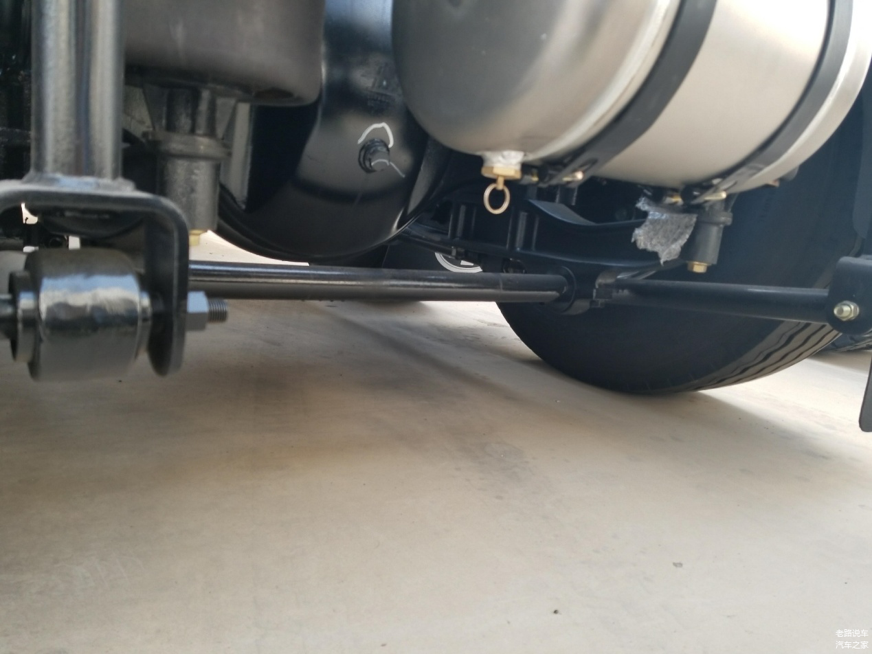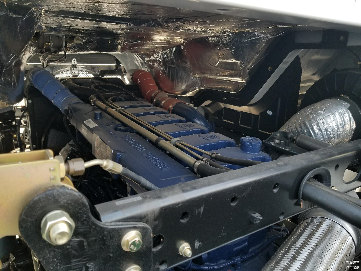 该车出厂加装倒流罩,空滤的位置从下面转移到了驾驶室的底部。排气管也由低位改为了高位竖置,可以减小气阻,并且能够有效的降噪。