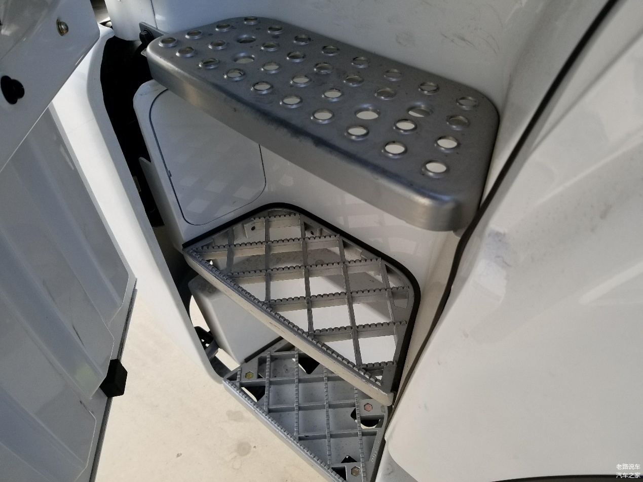 镂空设计的三阶隐藏式登车踏板,防滑锯齿比较明显,再加上登车扶手较低,登车时比较省力。该车主驾驶座椅采用的是弹簧式座椅,成本较低,舒适度不是太高。