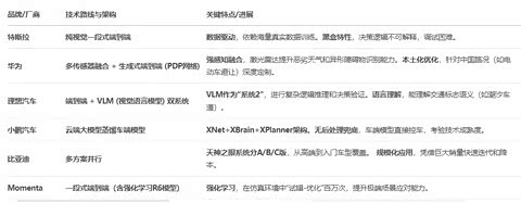 虽然都叫端到端大模型,但各车企的技术路线却大相径庭。其中,特斯拉的纯视觉一段式端到端极具颠覆性但略显激进;华为则在融合感知和生成式端到端规划方面,展现出强大的工程化能力;理想、小鹏等紧随其后,纷纷探索端到端与VLA等新技术的结合,其中小鹏还采用云端大模型蒸馏车端模型的策略;比亚迪则通过灵活的分级策略,推动智驾普及。至于Momenta等供应商,虽然也是一段式端到端路线,但会通过强化学习等方案为多家车企提供支持。