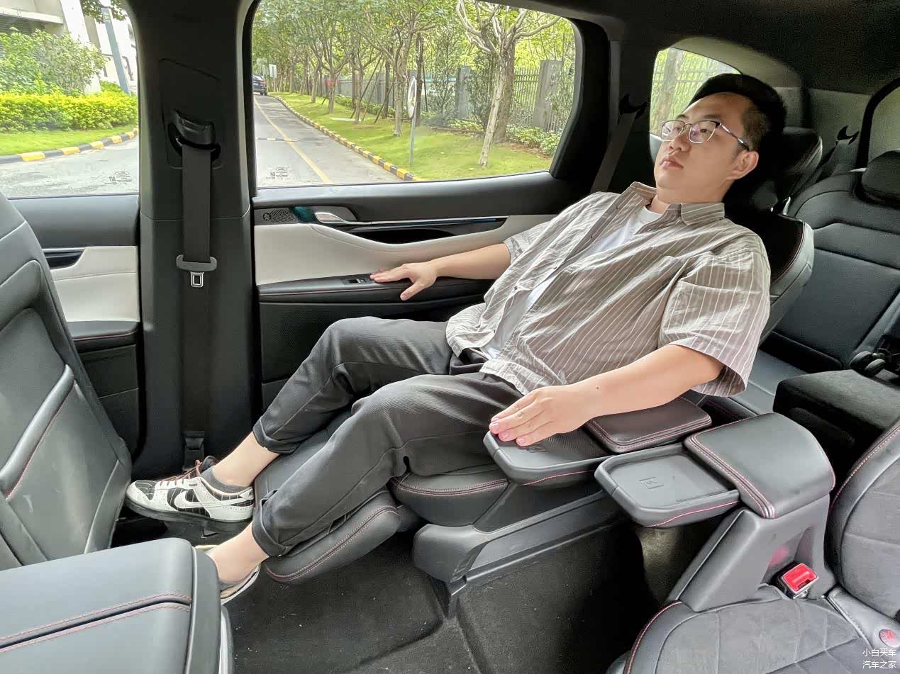 但锐界L不仅是简单地提供一个看似很好的座椅布局,更重要的是它的座椅和空间是真的给力。第二排的空间可以说是相当宽裕,腿部空间1190mm,肩部空间1529mm。而且第二排座椅带有舒适脚托,还可以让乘客一键切换多种模式,例如想要在车里午睡歇息,完全可以用零重力模式,直接在车内躺平。