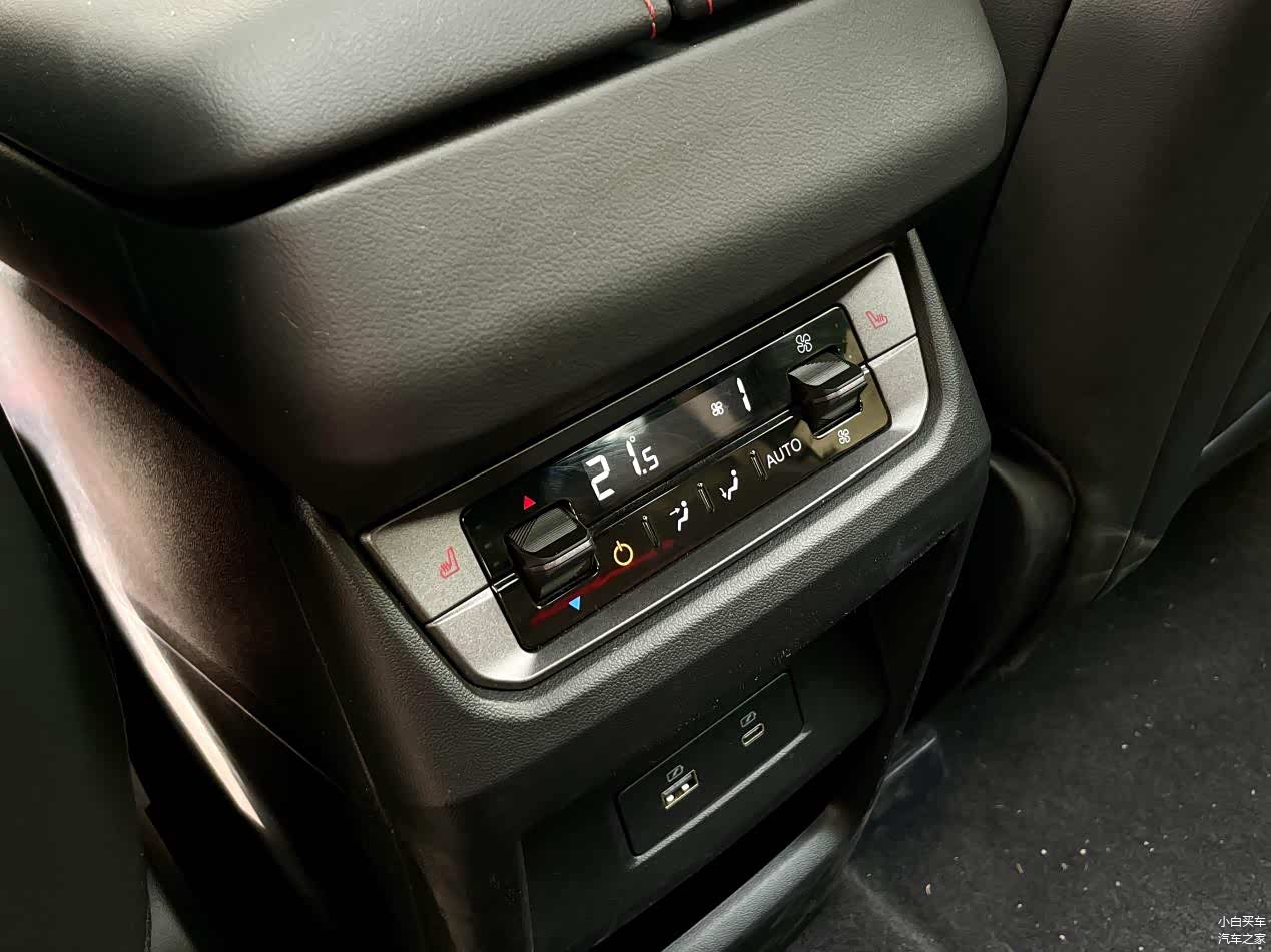 除了空间舒服以外,第二排还在扶手上设置了手机无线充电,非常方便的小功能。长途再也不怕手机电量不足了!另外第二排座椅的加热通风功能都是有安排上,而且后排乘客可以自己独立控制这些功能。有一说一,这样的第二排已经跟高端MPV差不多了。