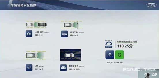 别克世纪在本次测试中取得了不俗成绩,车辆辅助安全指数G级,AEB ARU及LSS满分,而且搭载E-call紧急呼叫系统也可以加分,总分110.25,得分率达到96.7%,排名前列。