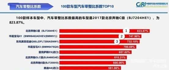 销量较高的平价车型,零整比较低,修起来也较实惠;而豪华车型则相反,保有量较低,零整比也更高,国产化率和品牌溢价也会影响消费者的选择。此外,市场竞争加剧,新车销售利润被压缩,以售后配件来获利已经成为了一种常见的方式。