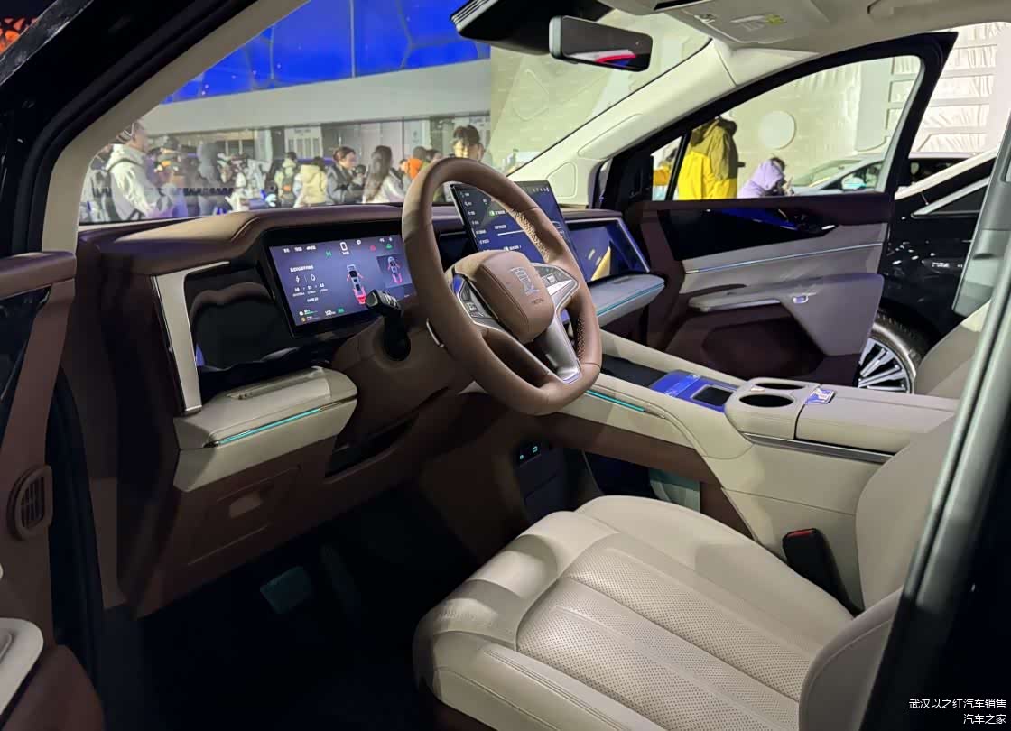 内部设计已经得到了全面的曝光,采用了15.6英寸的超大中控屏幕,高配车型还拥有12.3英寸的副驾驶娱乐屏幕,但仅限于高配车型。此外,还拥有12.3英寸的全液晶行车电脑,而且高配车型还搭载了后排液晶屏幕,尺寸达到了15.6英寸。整个内饰的科技感以及豪华感还是很突出的,并且实际体验过程中还发现配置很高。不仅标配了电动天窗,甚至L2级别的智能辅助驾驶系统,540度全景影像系统同样做到了标配。此外,还匹配了豪华车内氛围灯以及车载冰箱,车载香薰等一系列的配置。