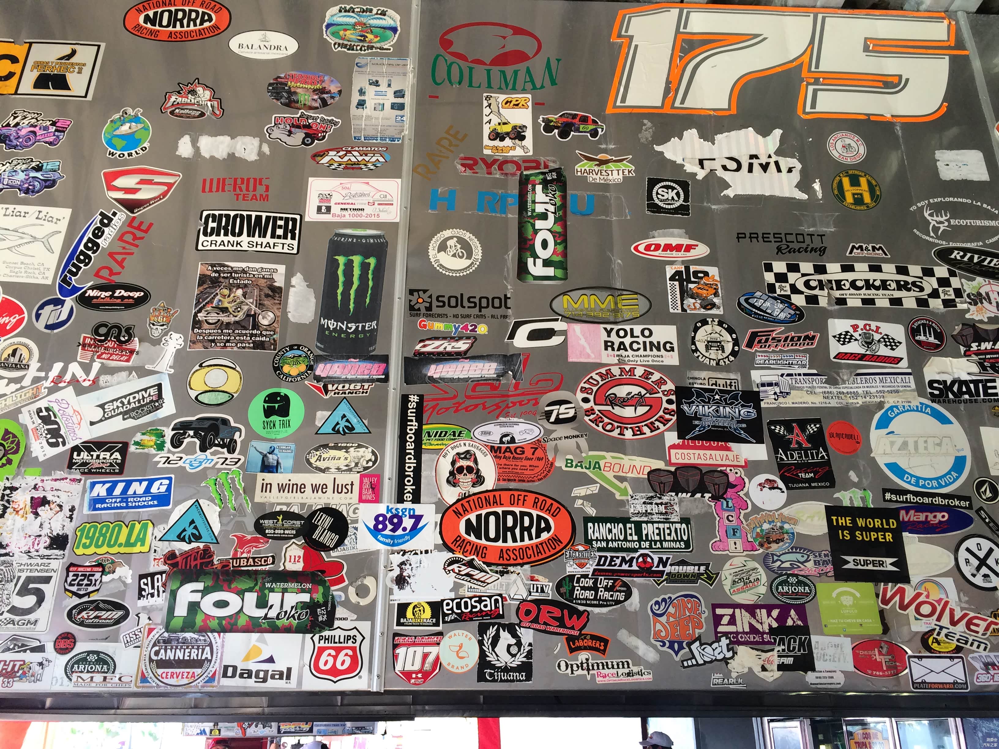 这些贴纸都是来城里参加比赛的车队以及赞助商的Logo, 这么多贴纸证明大家都在此逗留过,也都钟爱这里的食物,我们也贴了几张以示到此一游。。