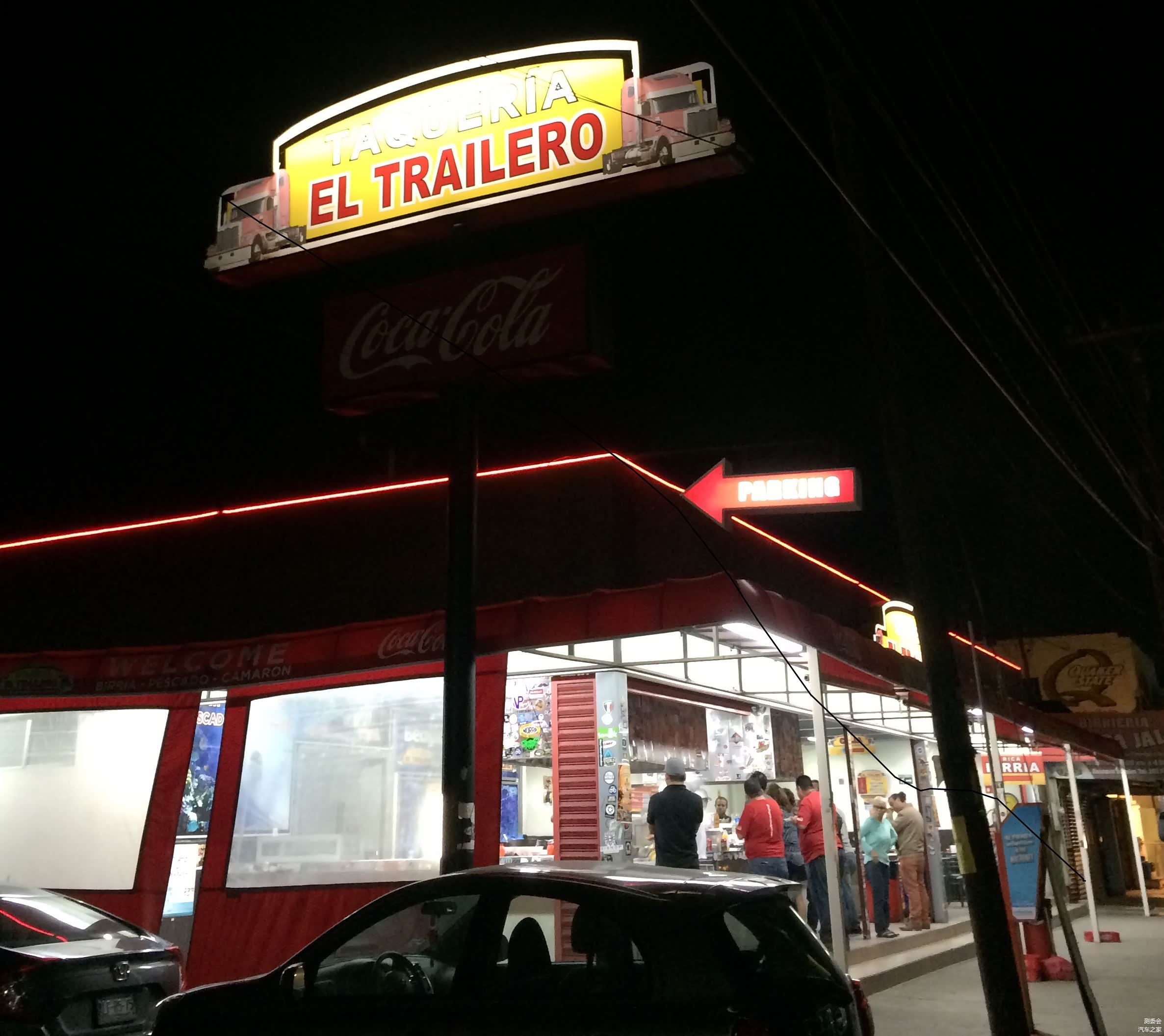 离开Tijuana在高速公路上开了一个小时左右,我们停在了一家叫El Trailero的路边饭店,据老司机说这里有Ensenada以北最好吃的Taco(玉米饼夹肉)。