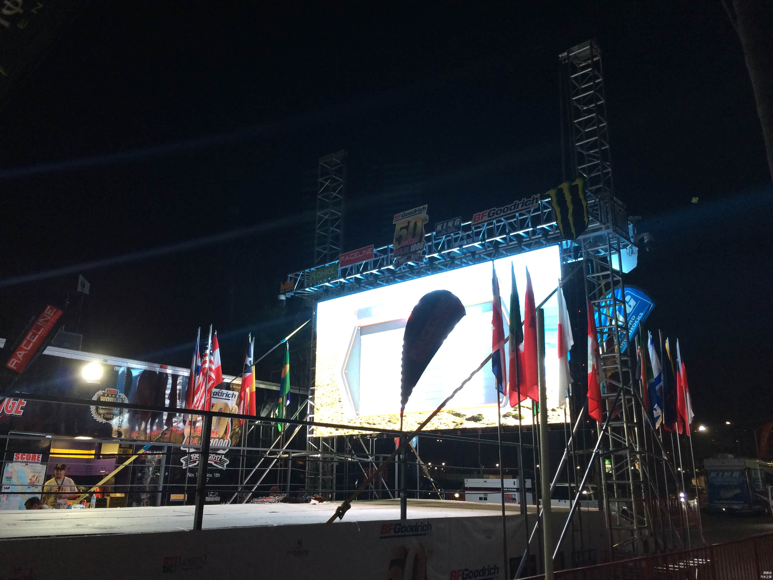 到Ensenada市中心已经是深夜了,比赛的出发台已经搭建完毕,马路已经封好,街边各个小摊也都支起来了准备迎接明天的大量的人群。我们在搭好公司的帐篷和展位之后就回酒店休息了。