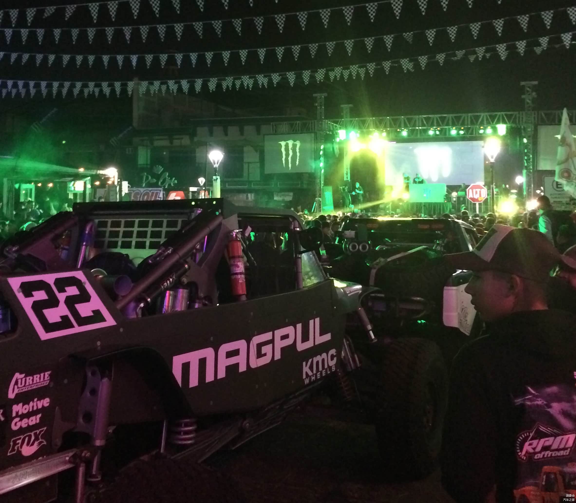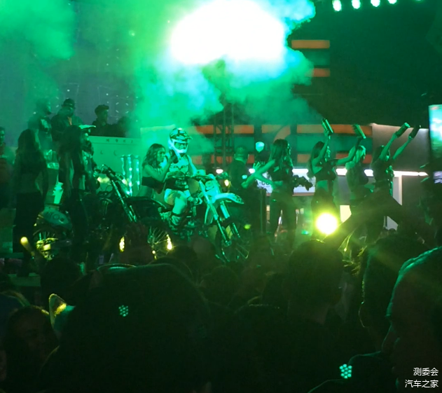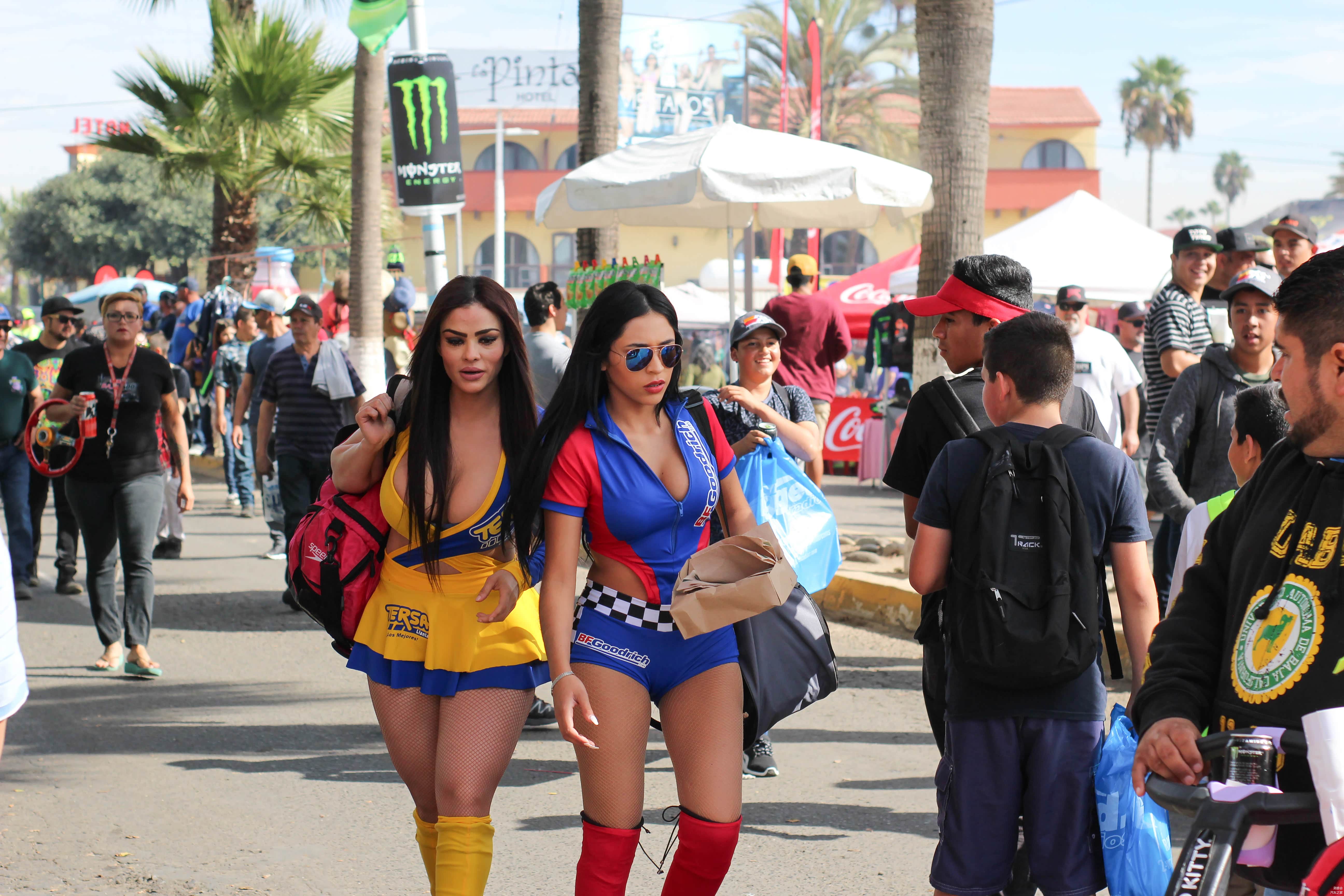 晚上,作为沙漠越野赛事最大的赞助商之一,Monster功能饮料在市中心举办了人人都能参加的狂欢大派对。DJ在台上放着嗨曲,赛车手把越野摩托骑上台,还有各个越野赛事中最抢眼的Monster girls在台上助兴,将Ensenada变成了不夜城。