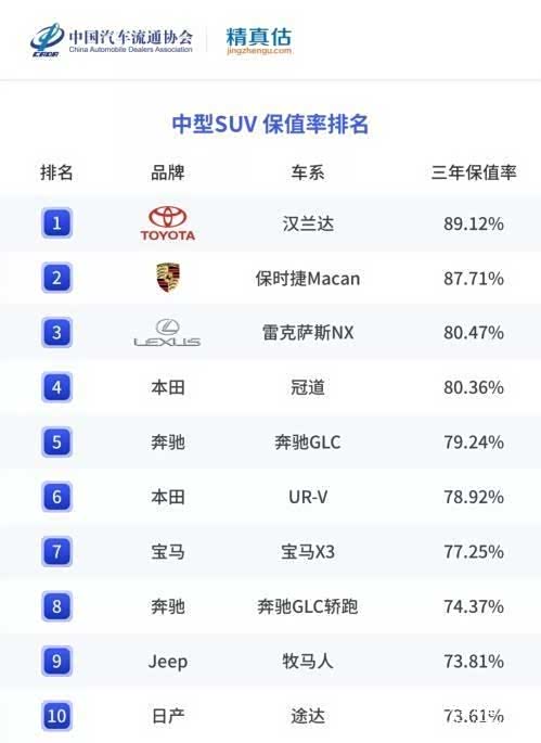 保时加Macan也以87.71%的保值率高居第二。另外,雷克萨斯NX、广汽本田冠道也均超过80%。