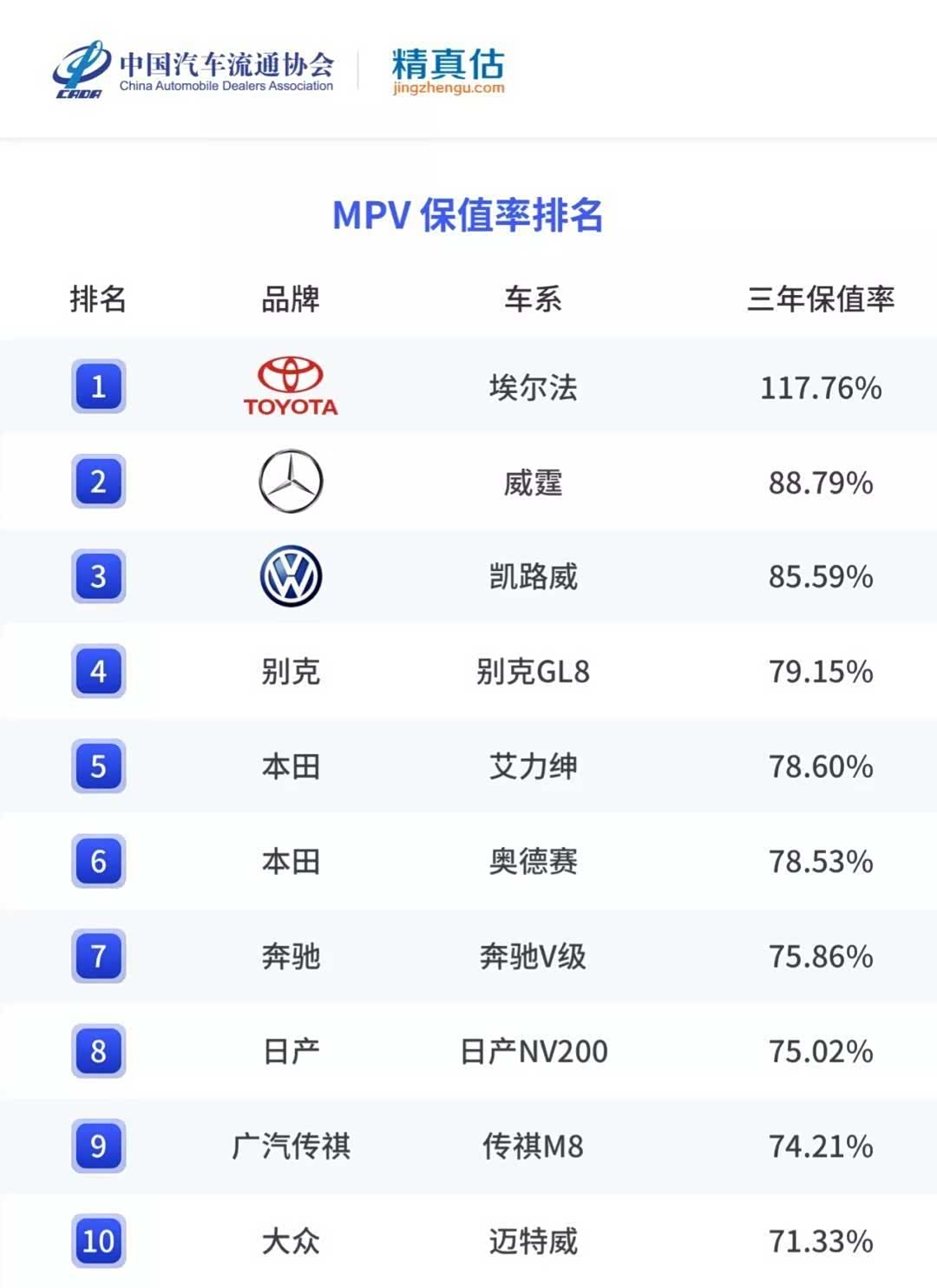MPV保值率:埃尔法是真正的理财产品