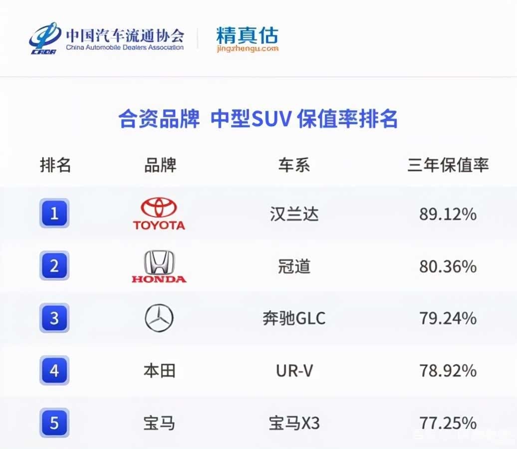 合资方面,除了汉兰达和冠道之外,上榜的还有北京奔驰GLC、东风本田UR-V以及华晨宝马X3,这些车型的三年保值率均高于77%。